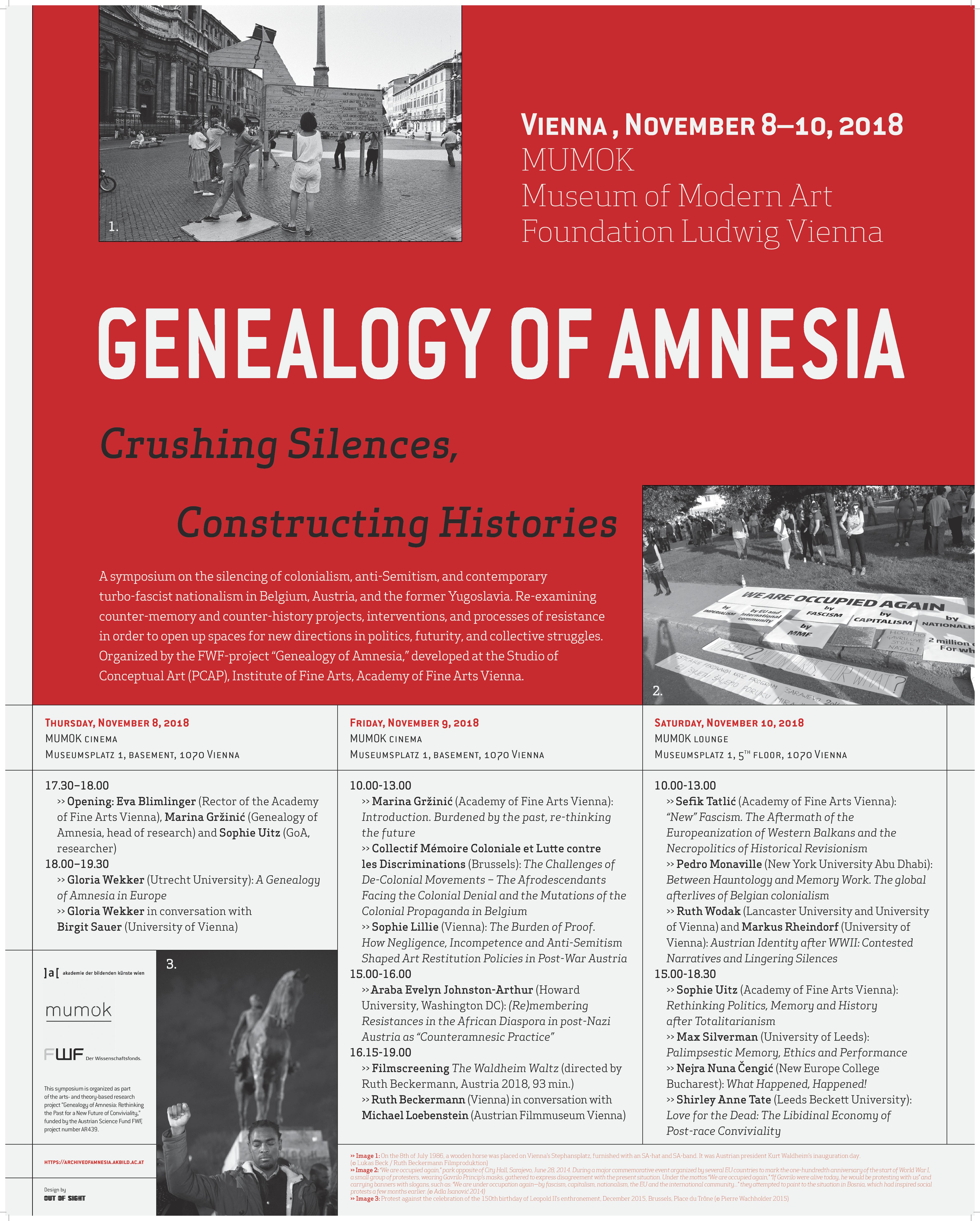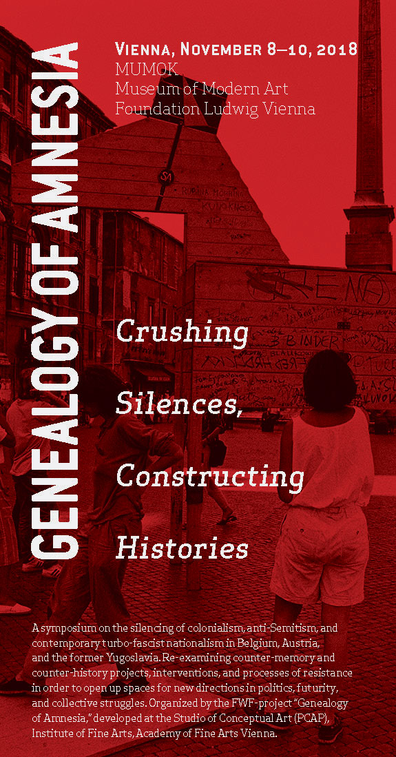 Symposium on the silencing of colonialism, anti-Semitism, and contemporary turbo-fascist nationalism in Belgium, Austria, and former Yugoslavia. Re-examining counter-memory and counter-history projects, interventions, and processes of resistance in order to open up spaces for new directions in politics, futurity, and collective struggles.