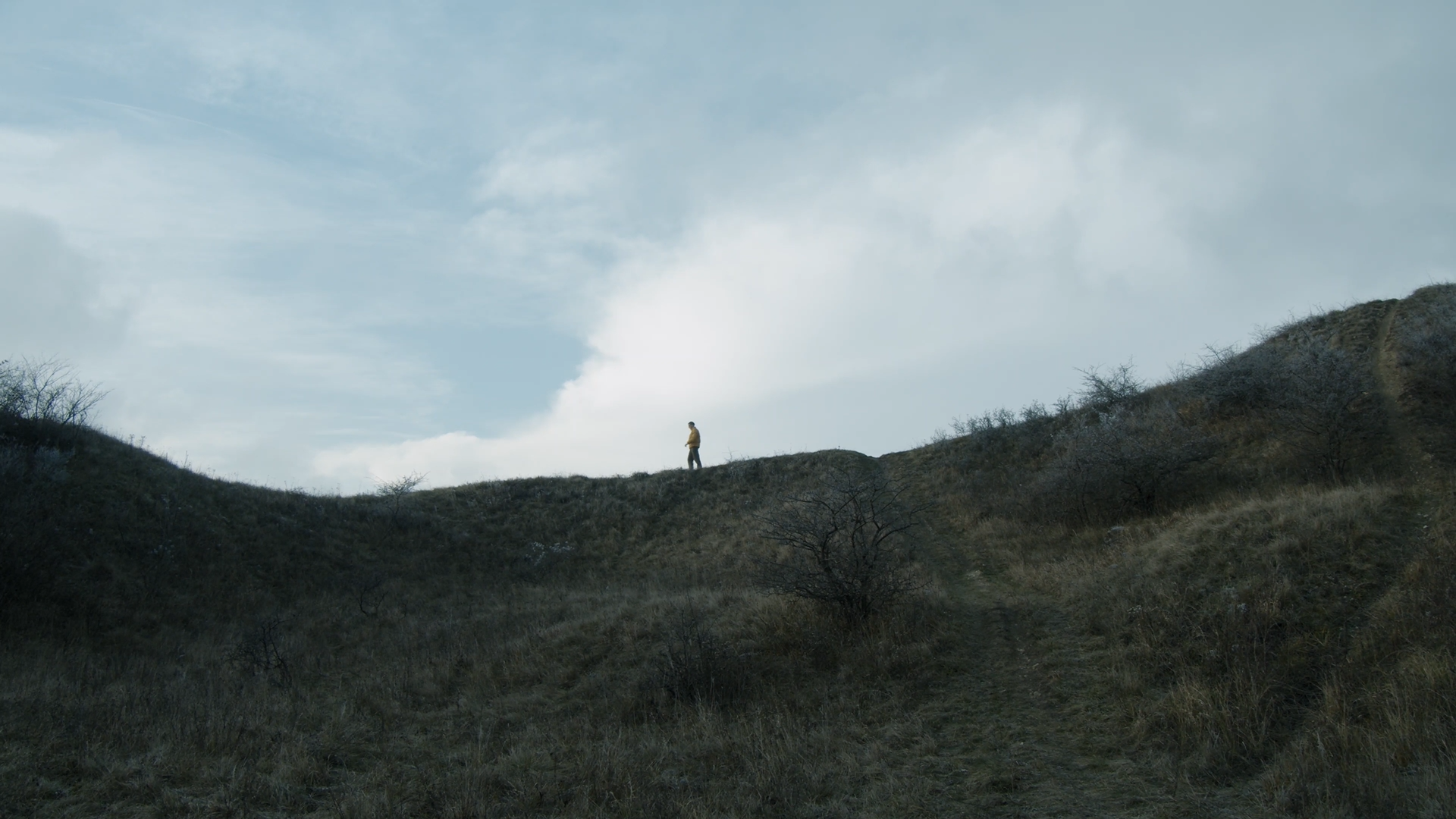 Ich hatte das Bild eines jungen Mannes, der in gelber Jacke durch eine Landschaft streift. Die gelbe Jacke habe ich einem Gastarbeiter entlehnt, der mein Kollege bei der Spargelernte im ersten Lockdown war. Ich wollte also eine simple Idee umsetzen – und diese nicht mit weiterführenden Überlegungen verwässern. Ich wollte meinem ursprünglichen Impuls folgen und sehen, wohin er uns führt. Ich habe Benedikt, Johannes und Fintan ins Boot geholt – und im zweiten Lockdown waren wir, glaube ich, alle froh über diese konkrete Aufgabe, die wir uns selbst auferlegt haben: Der Protagonist Thomas streift durch seine Landschaft und stößt auf einen unbekannten Körper am Boden.