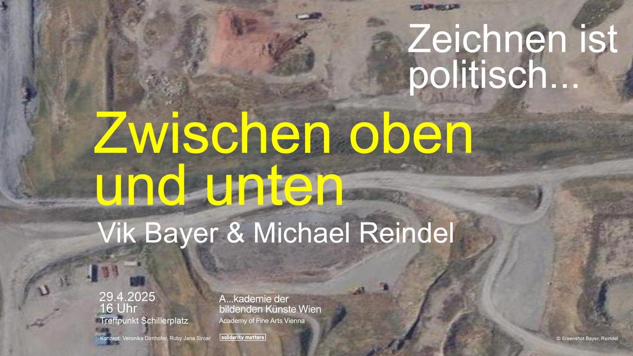 Zeichnen ist politisch: Between above and below ist eine zeichnerische Verortung im urbanen Raum durch die Perspektive von „Urban Mining“. Urban Mining ist ein Diskurs, der unsere gebaute Umwelt als Rohstoffquellen ansieht, sofern die Materialien wiederverwendet und somit in einen Kreislauf eingebunden werden. Im Rahmen des Workshops brechen wir Unterscheidungen von Abfall und Ressource auf, blicken genauer auf die Schichten der Stadt und ihrer oft unsichtbaren Infrastrukturen.