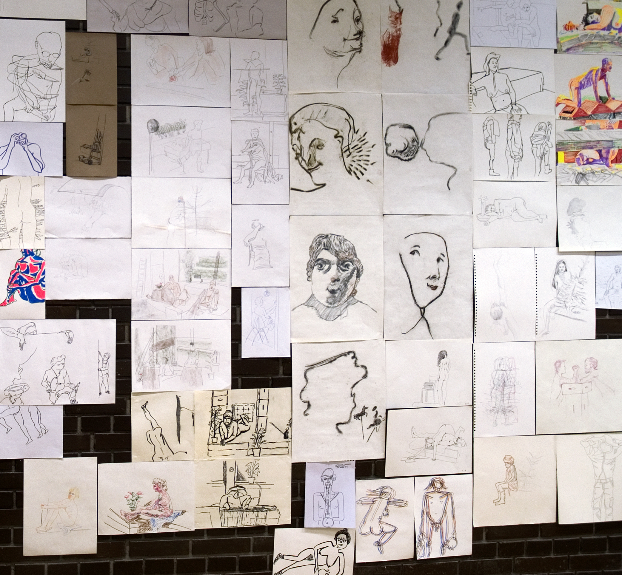 Die Unmittelbarkeit der zeichnerischen Umsetzung einer Situation vor Ort ermöglicht es, die begriffliche Vorstellung von Figuren und Gegenständen zu Gunsten einer nonverbal-visuellen Idee momenthaft zu verlassen. So können auch Rollenbilder zeichnerisch hinterfragt werden. Über den Versuch Personenkonstellationen in kurzer Zeit zeichnerisch zu erfassen, soll künstlerisches Risiko erprobt werden.