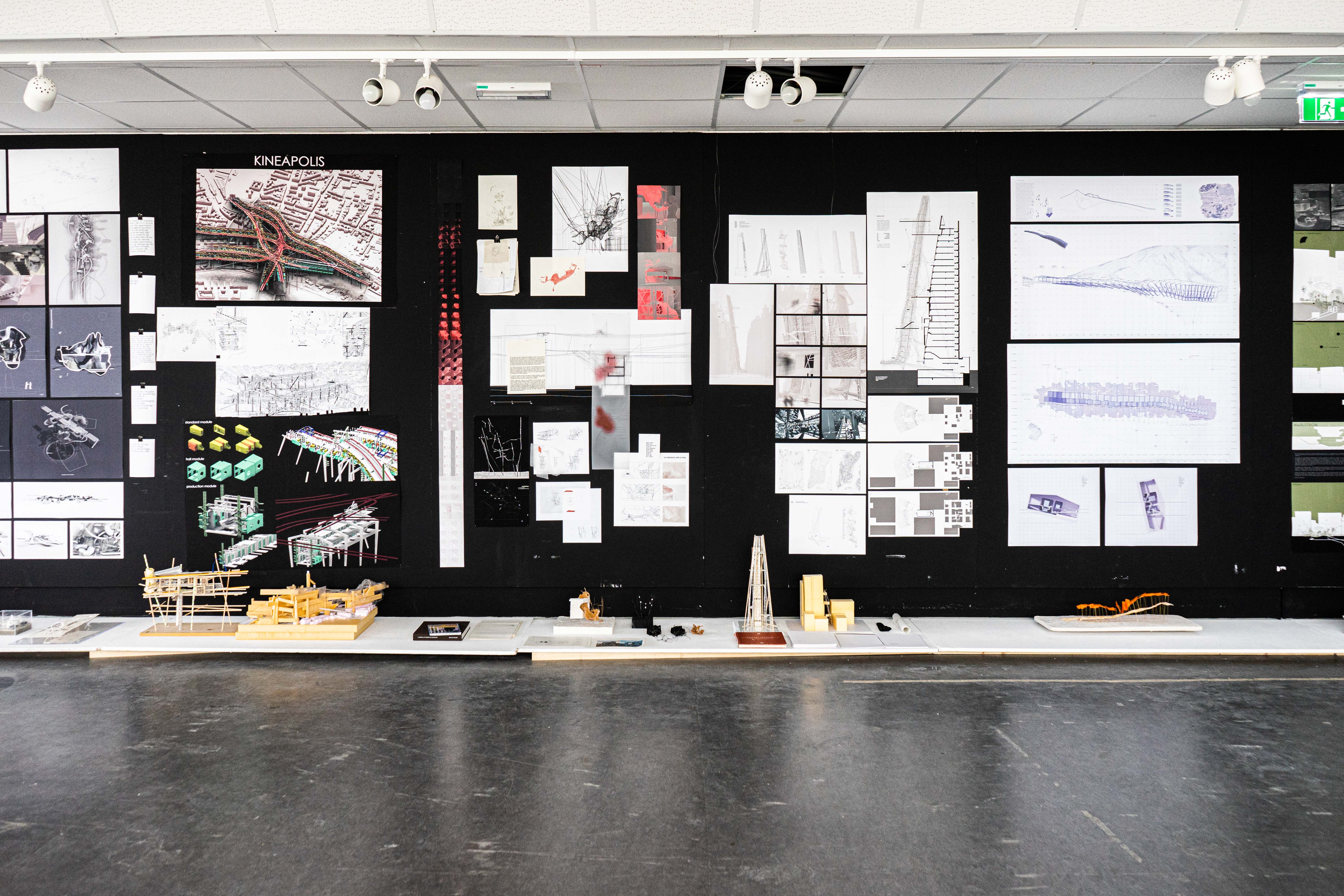 Finals, Design Studio ESC Bachelor, Foto ©Christina Maria Ehrmann, 2021 Auf einer schwarzen Wand hängen unterschiedliche Pläne, davor auf horizontalen Platten, stehen dazugehörige Architekturmodelle. 05_20210615_ika_finalreview_ss_esc_bac_christinamariaehrmann (37 von 45).jpg image/jpeg Typ image/jpeg Dimension Abmessungen 6000x4000 Size Dateigröße 2.4 MB Herunterladen Bild in voller Größe anzeigen…