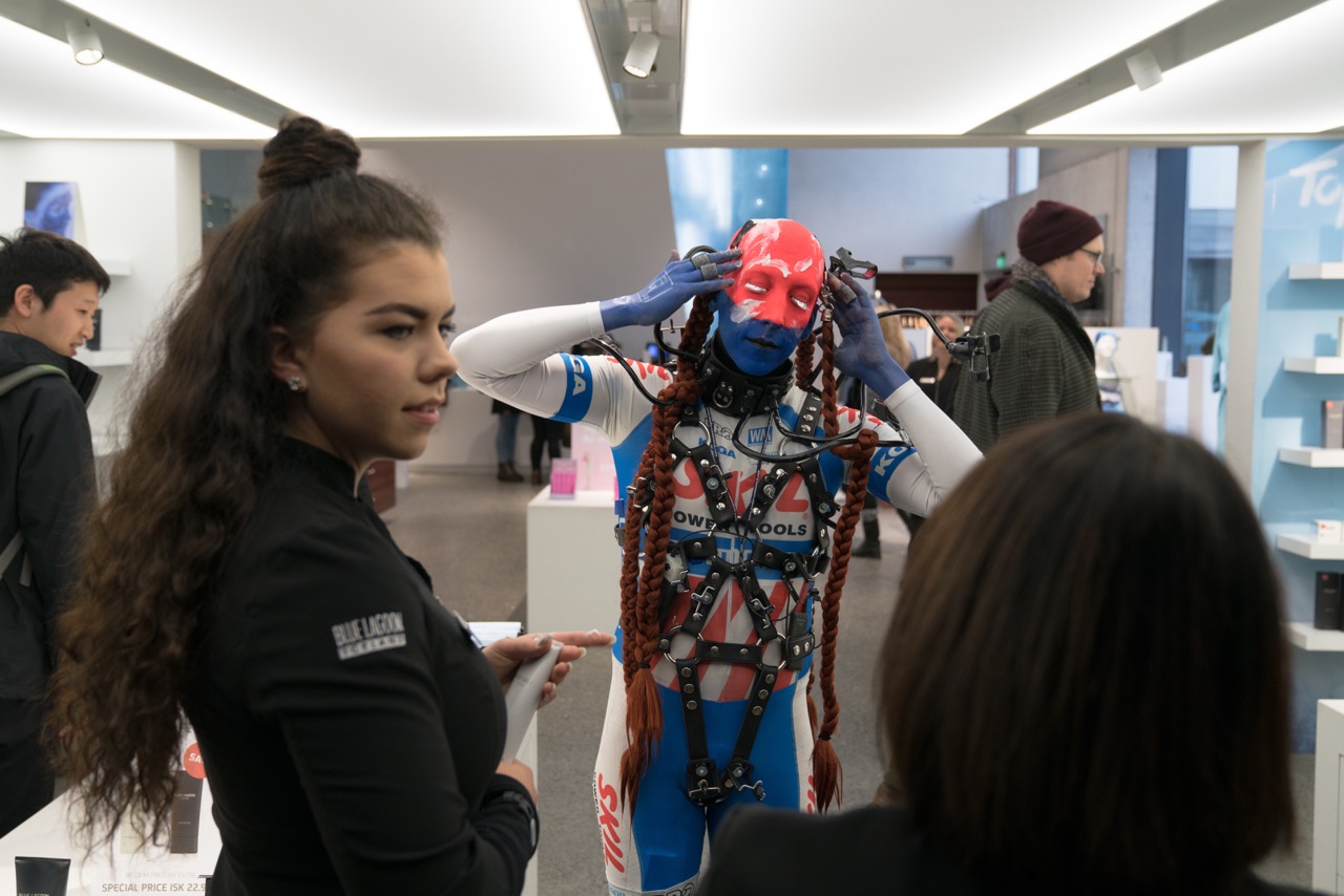 The lecture “Identitecture” of Berlin based artist Johannes Paul Raether will introduce three of his “SelfSisters” as “Potential Identities”. Through their bodies and their language the corresponding performance system, which he has been continuously developing since 2008, will be described. The system of “Identitecture” deals with a transformed body in different “skins” where schizological and political analysis of society collapse with language mutations and site-specific surveys.Identitektur provides scalable platforms manifesting themselves through infiltrations, teach-ins, lecture-adventures, selfie-wars, appearances, processions, and rituals. „To engineer oneself into community“ or “communeering” act as prerequisites for the speaking in digitally fractured identities, in techno-alchemic tongues; leading to the resolution of the audience body into a new collective formation, such as the “Repro Tribe” or the “Communitymaschine”. The process of „Identitecture" dramatizes aesthetic politics and artistic intervention techniques beyond itself. Thereby taking an exodus from the narrowly circumscribed field to question the occasionally simple reading of political art and negotiation of its themes. Rather, the aim is to place experiments on the own body against triumphal politicality and heroic subjectivities, finding the fragile moments of “drag” and the residing blurred surfaces and ways of speech in order to be able to expose the vulnerability of non-normative social actions.