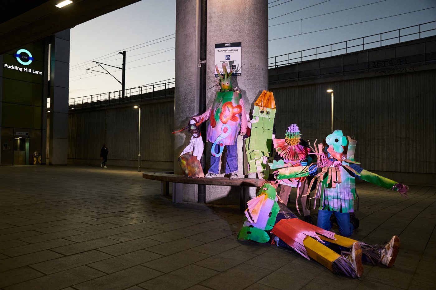Die abschließende performative Aktion wurde im öffentlichen Raum in der Pudding Mill Lane in Stratford, East London, inszeniert. Das in Zusammenarbeit mit der Choreografin Heidi Rustgaard und dem_r Fotograf_in Henri T entwickelte Projekt resultierte in fotografischen Arbeiten, die unser erweitertes Verständnis von Natur, Biologie und Vielfalt durch kollektive Präsenz erzählen.