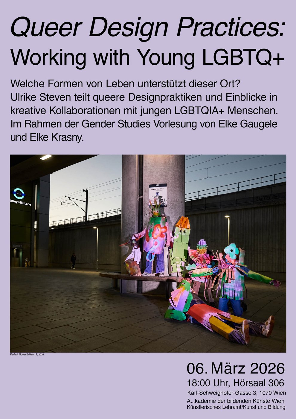 Welche Formen von Leben unterstützt dieser Ort? Ulrike Steven teilt queere Designpraktiken und Einblicke in kreative Kollaborationen mit jungen LGBTQIA+ Menschen. Im Rahmen der Gender Studies Vorlesung von Elke Gaugele und Elke Krasny.