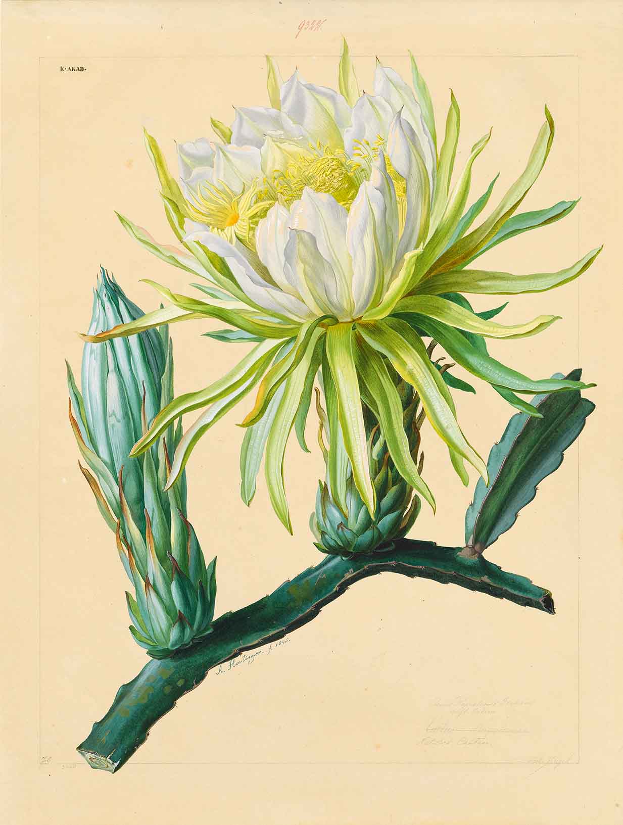 Die Ausstellung ermöglicht eine Exkursion in die von Pflanzenpracht strotzenden Wiener Glashäuser des vorvergangenen Jahrhunderts und bietet Einblick in den umfangreichen Bestand an Blumenaquarellen im Kupferstichkabinett.
