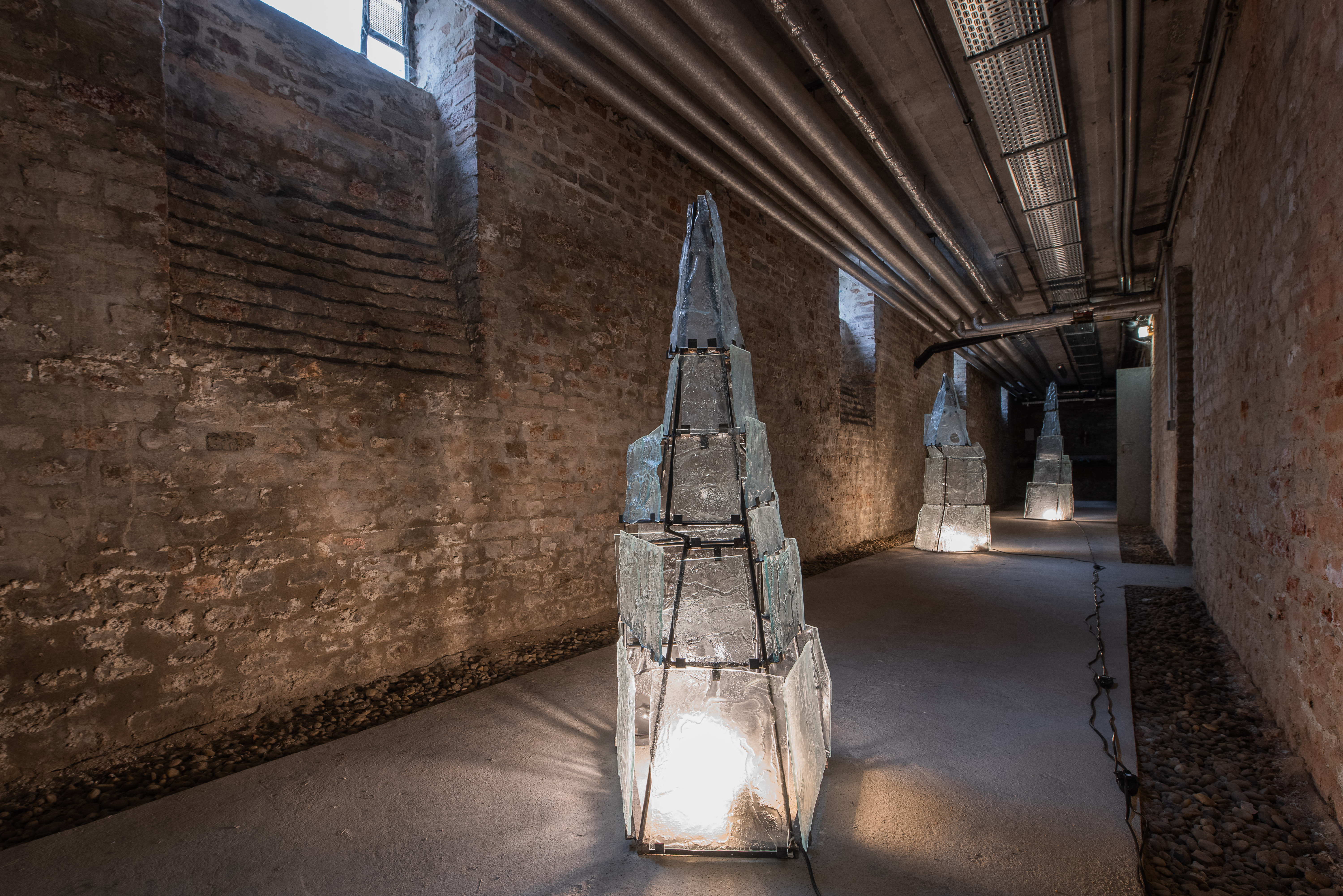 final project by Gala Verhavert, Sculpture Studios, Kurzbauergasse, photo: eSeL - Joanna Pianka 2022 basement corridor with brick walls with three glass pyramids illuminated from the inside with light eSeL_Joa-0432.jpg image/jpeg Typ image/jpeg Dimension Abmessungen 6000x4004 Size Dateigröße 4.4 MB Herunterladen Bild in voller Größe anzeigen…
