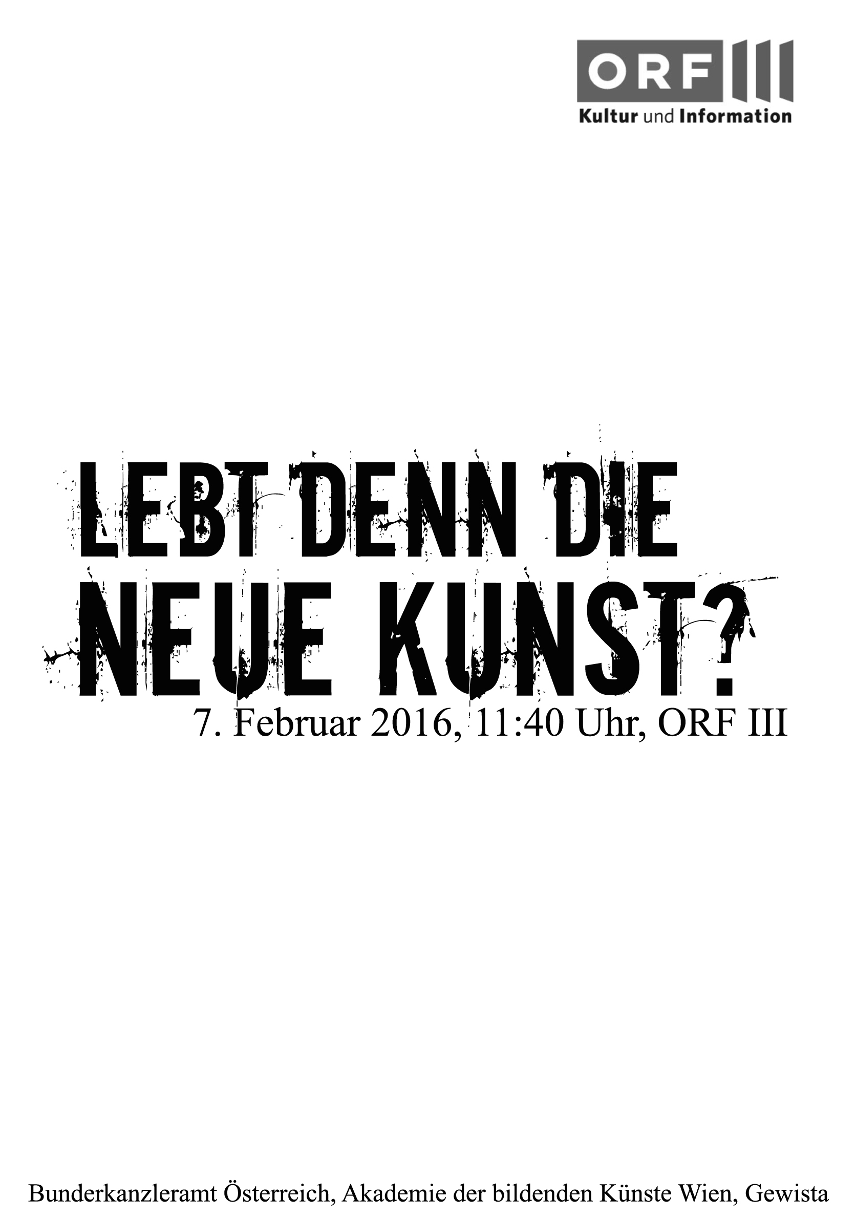 Wir freuen uns auf die erste künstlerische Arbeit von Alex Wieser Die Kunst ist tot. Lebt denn die neue Kunst? , in der sie drei Wegbereiter der österreichischen Medienkunst, Richard Kriesche, Peter Weibel und Hans Scheugl mit ihren früheren Arbeiten und Fernsehauftritten in Dialog treten lässt.