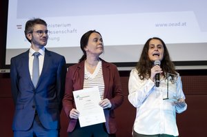 Forschungs- und Wissenschaftspreise 2025 an IKA Absolvent_innen Ferdinand Klopfer, Waltraud P. Indrist und Lisa Penz.