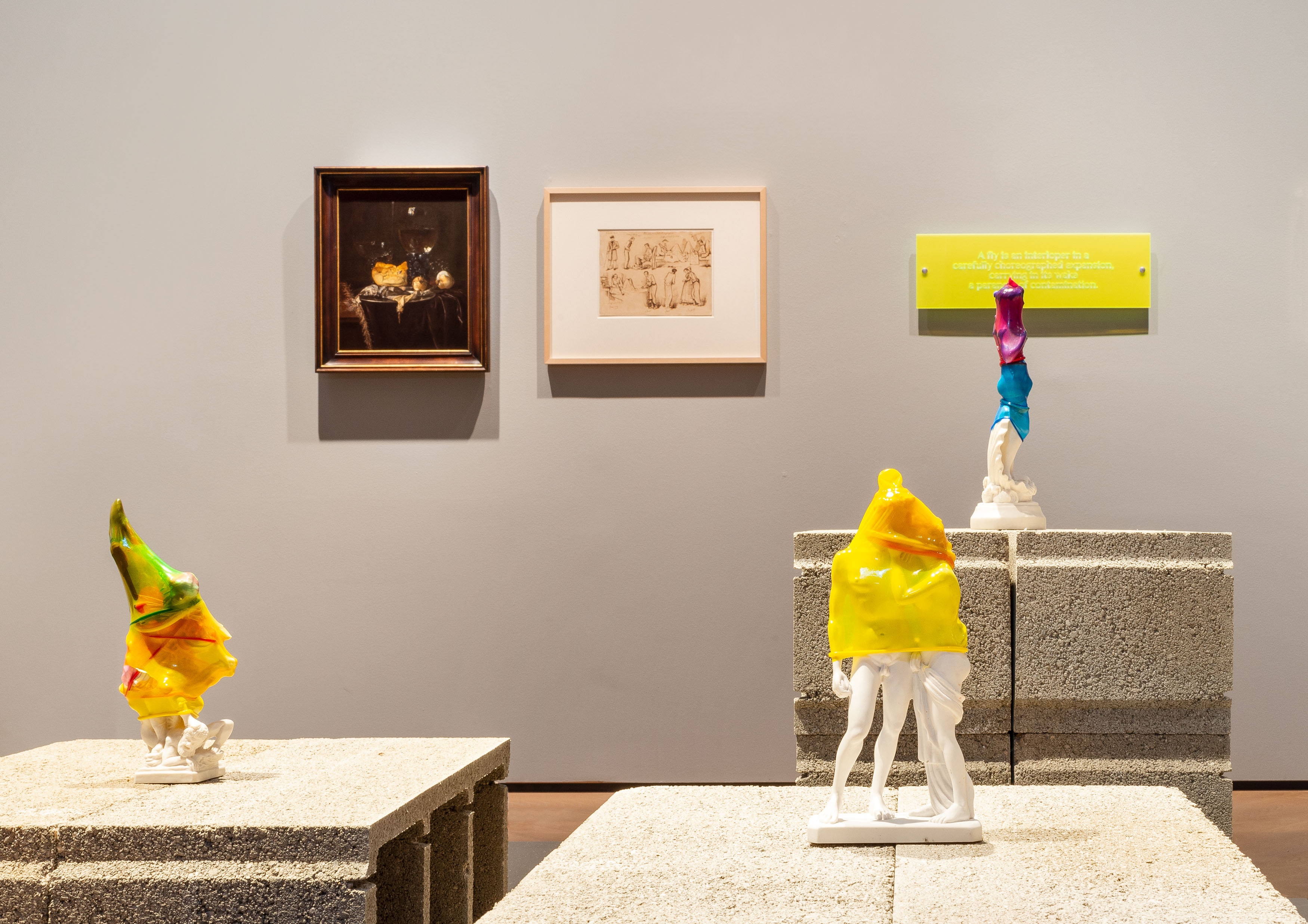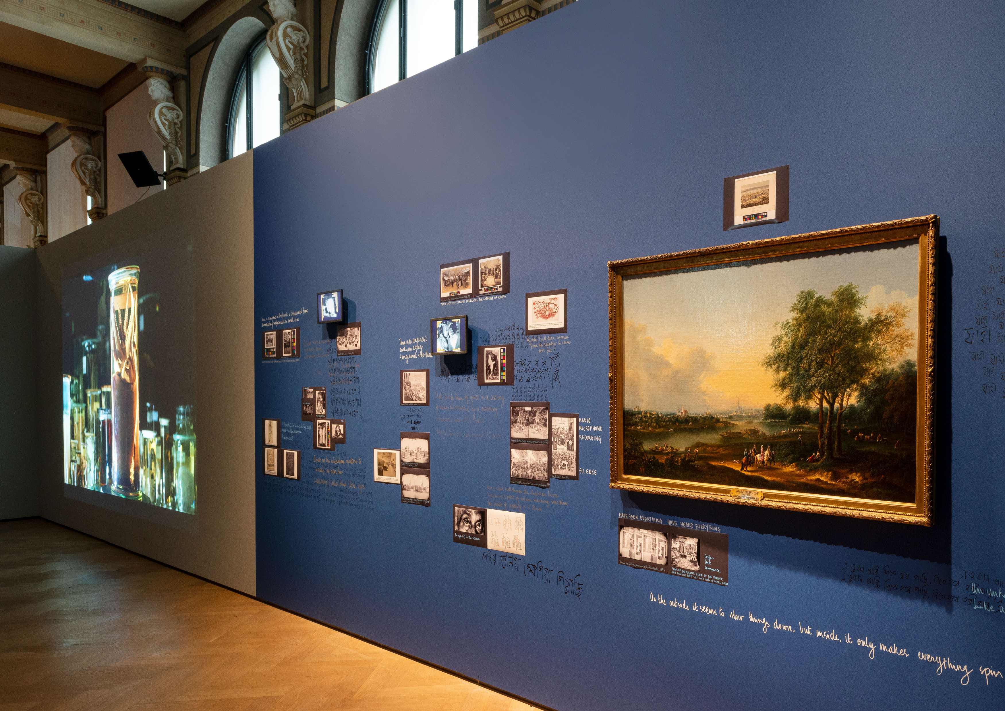 In der Dialogausstellung zu Hungry for Time in der nebenan gelegenen wiedereröffneten Exhibit Galerie richten Studierende der Akademie unter dem Titel Thicket of Ideas – Thicket of Times ihre Blicke auf die historischen Arbeiten der Sammlungen des Hauses. Sie hinterfragen einem dekolonialen Bestreben folgend unser chronologisch-lineares Verständnis von Zeit und damit auch die Konstruktion von (Kunst-)Geschichte und die Bedingungen von Geschichtsschreibung.