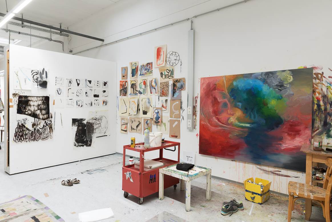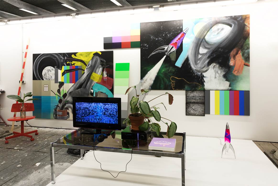 Rundgang 2017, Einblick in den Fachbereich Erweiterter malerischer Raum, Arbeiten von li nach re: Marcela Chiriac, Andy Schumacher