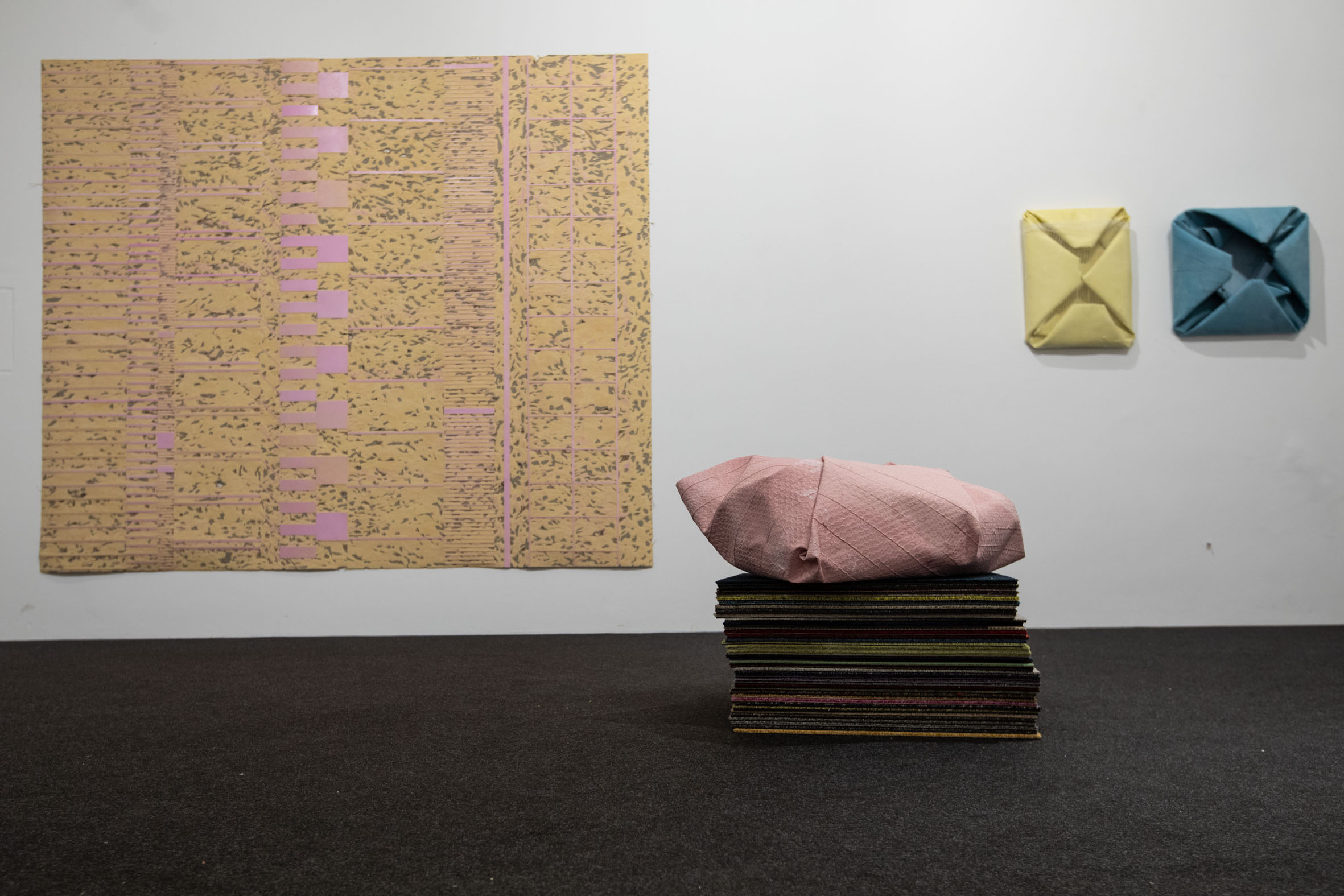 Faltung 14 , 2019, Leim, Gips, Putzgitter, Pigment