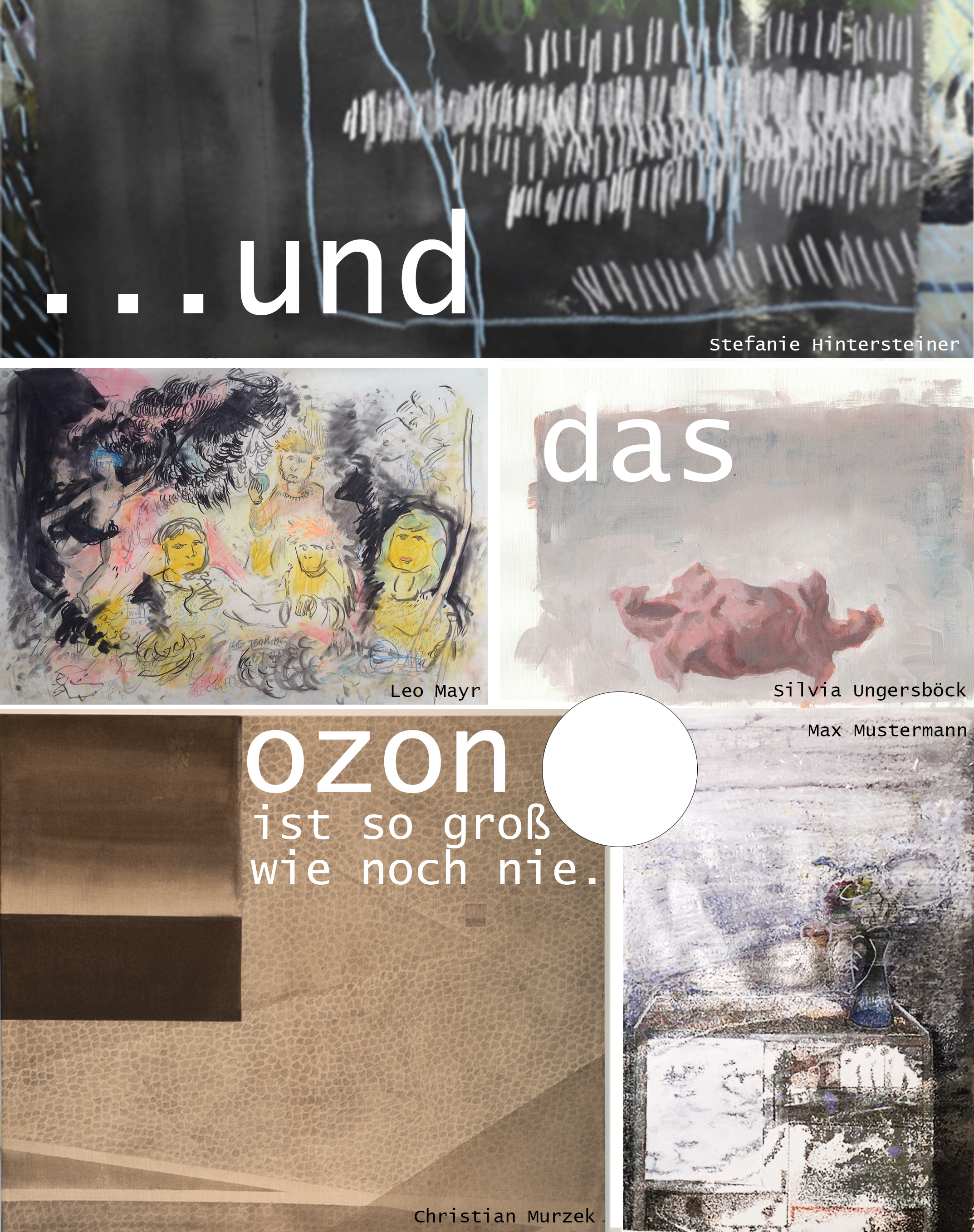 20.01., 19.00 h | ... und das Ozonloch ist so groß wie noch nie. Collage von Max Mustermann aus Arbeiten von Stefanie Hintersteiner, Leo Mayr, Christian Murzek, Max Mustermann und Silvia Ungersböck (2016)