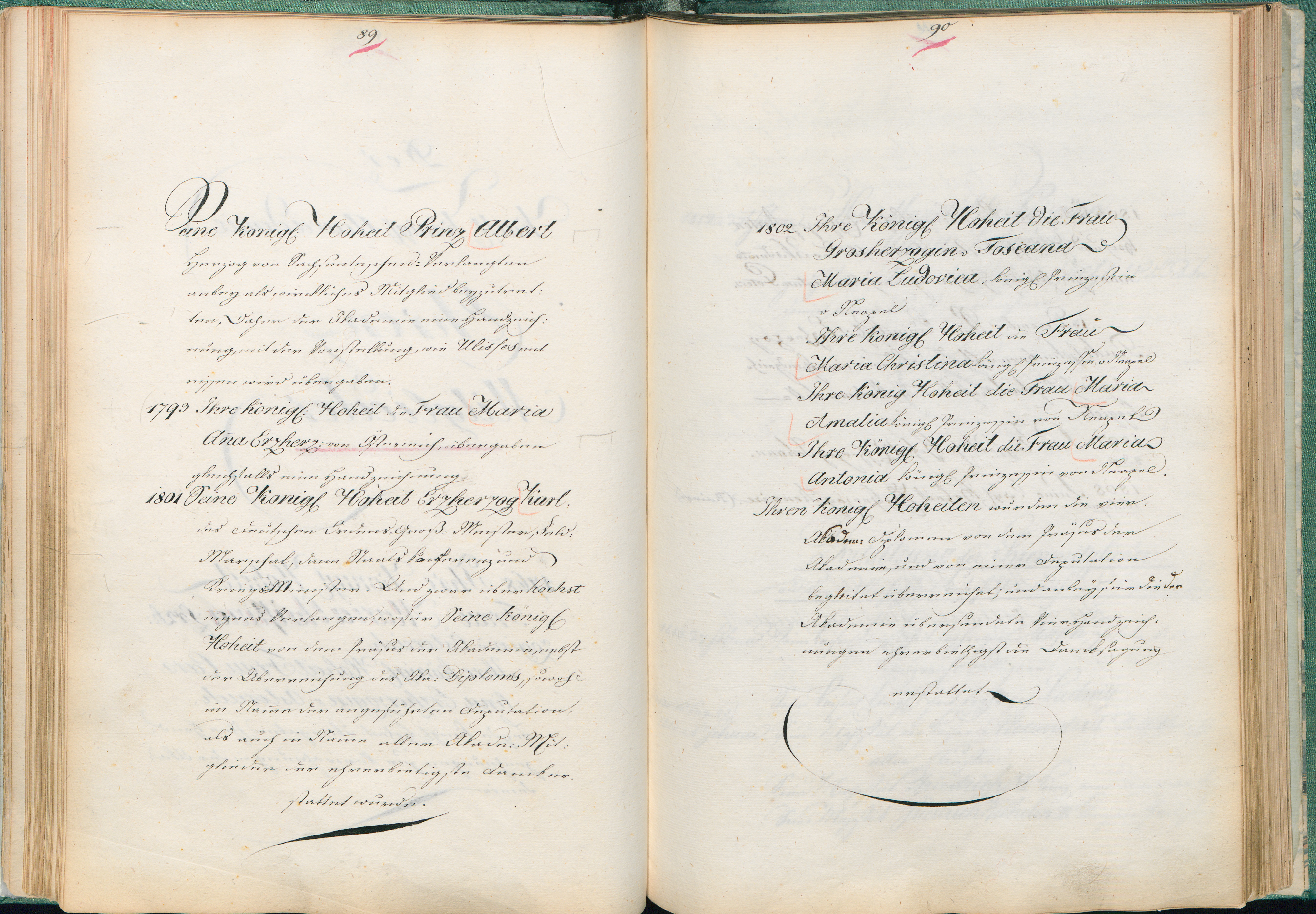 „Ihre K: K: Hoheiten die Frau Groß-Herzoginn / Maria Ludowica [Maria Ludovica, Marie Louise] (33) nebst / 3 k: k: Neapolitanische Prinzessinen werden zu Ehrenmitgliedern erwählt