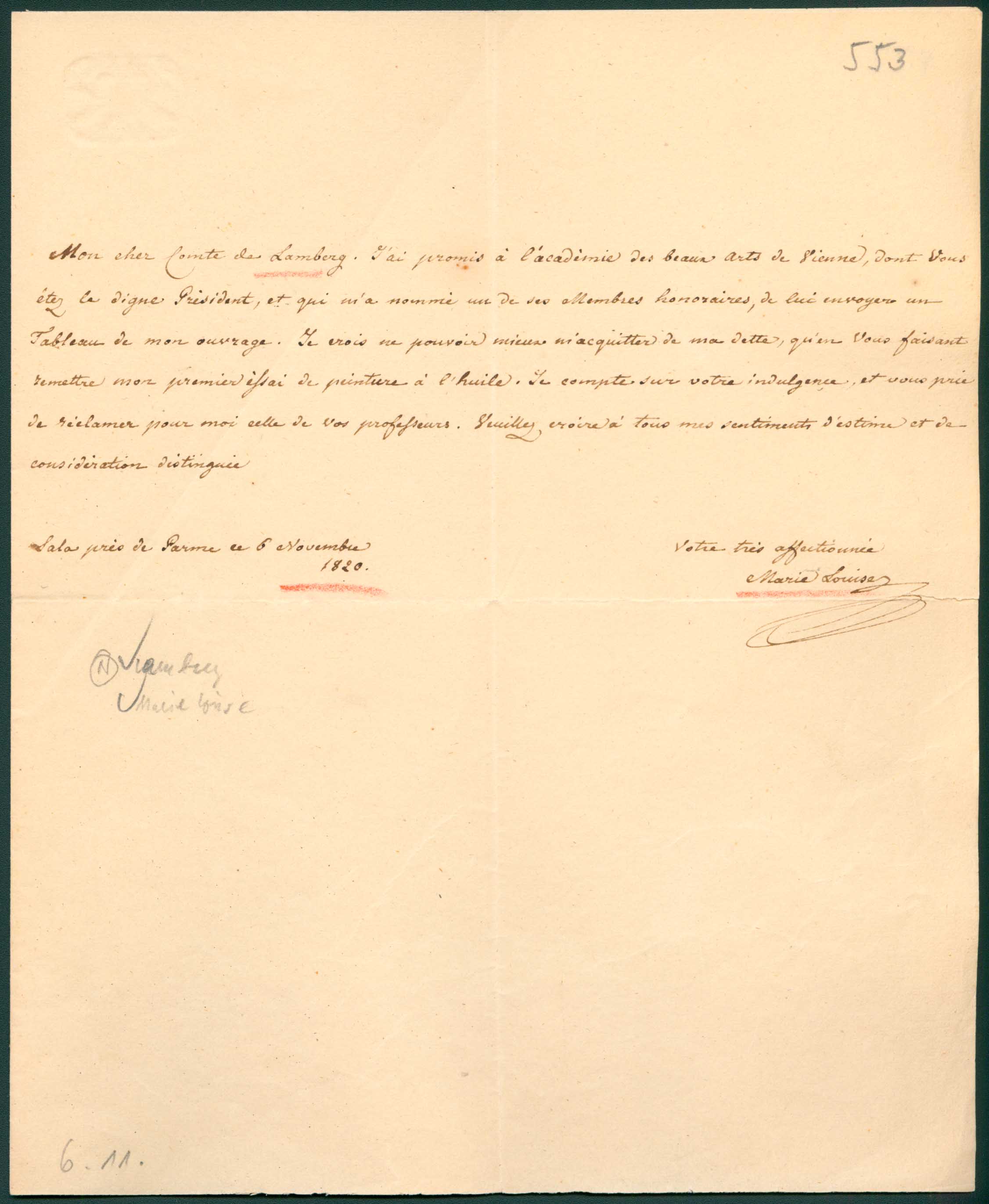 (40) UAAbKW, VA 1820, fol. 553, Dankschreiben, frz., Marie-Louises.
