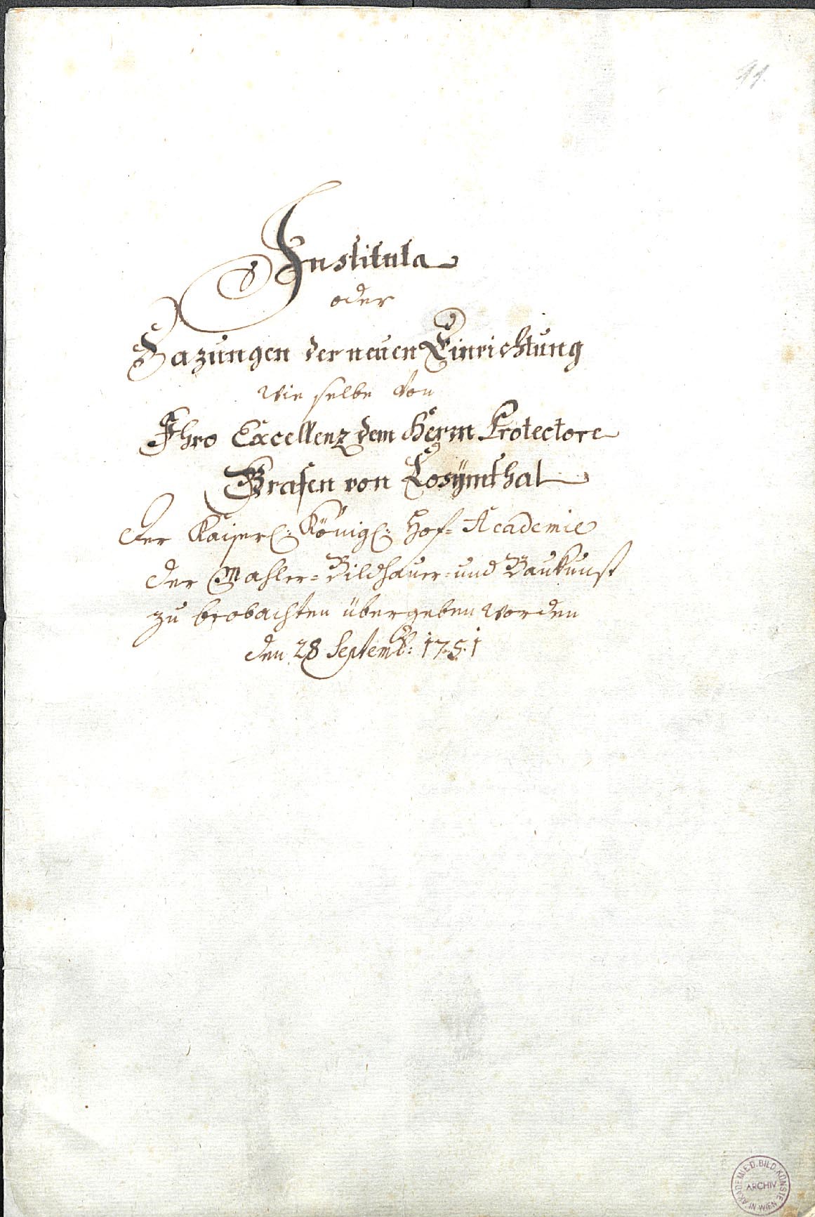 2 Universitätsarchiv der Akademie der bildenden Künste Wien (= UAAbkW), Statut 1726, MSZ II/3, fol. 160/168–174 ex VA 1735, hier fol. 169v.