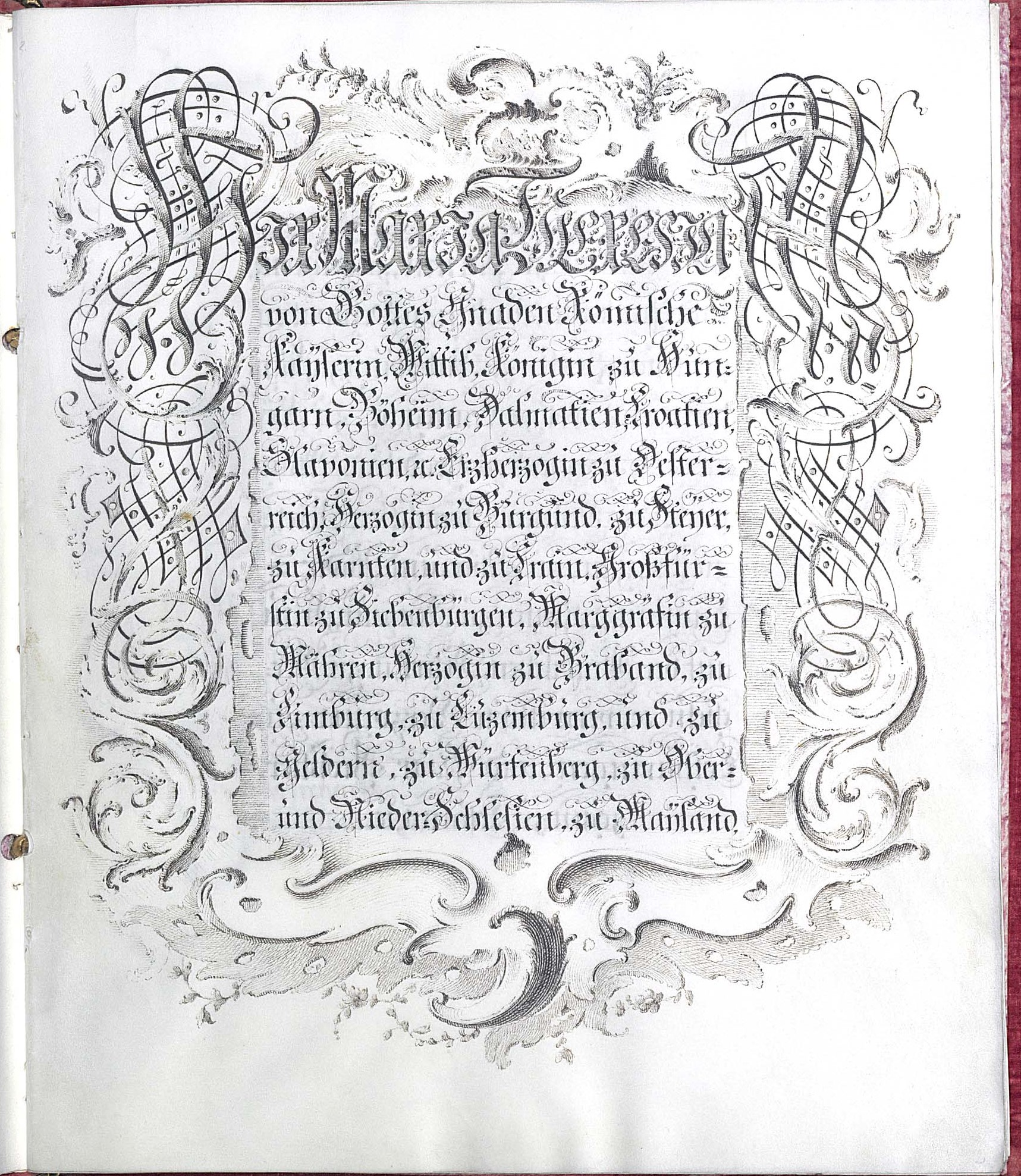 Das prächtige Statut der Kupferstecherakademie von 1767 zeigt die Wertschätzung, die Maria Theresia dieser entgegenbrachte.