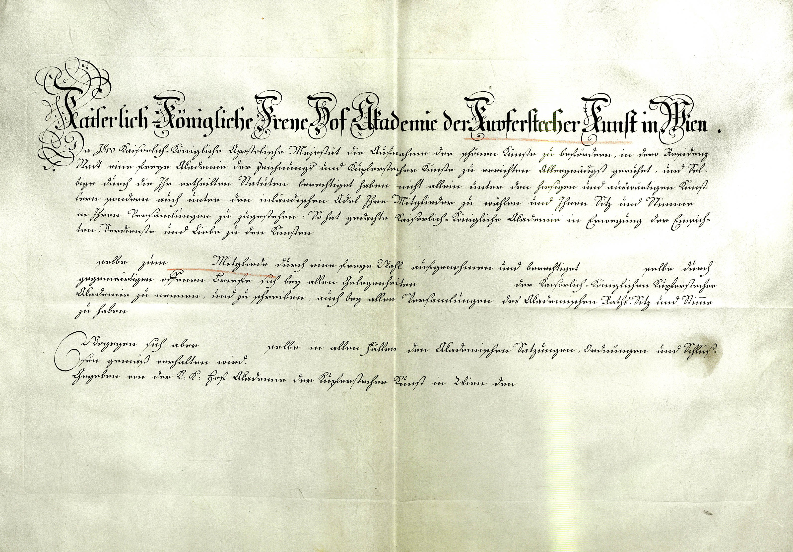 Die Möglichkeit, (Kunst-)Mitglied der Akademie der bildenden Künste Wien zu werden, bestand fast seit den Anfangszeiten der Institution; es durften dieser Gesellschaft nur ausgebildete (aktive) Künstler beitreten, die außerdem ein sogenanntes Aufnahmstück (eine Aufnahmearbeit) vorzulegen hatten. (1) Der Statutenentwurf von 1726 sah eine langwierige Anmeldungsprozedur vor:
