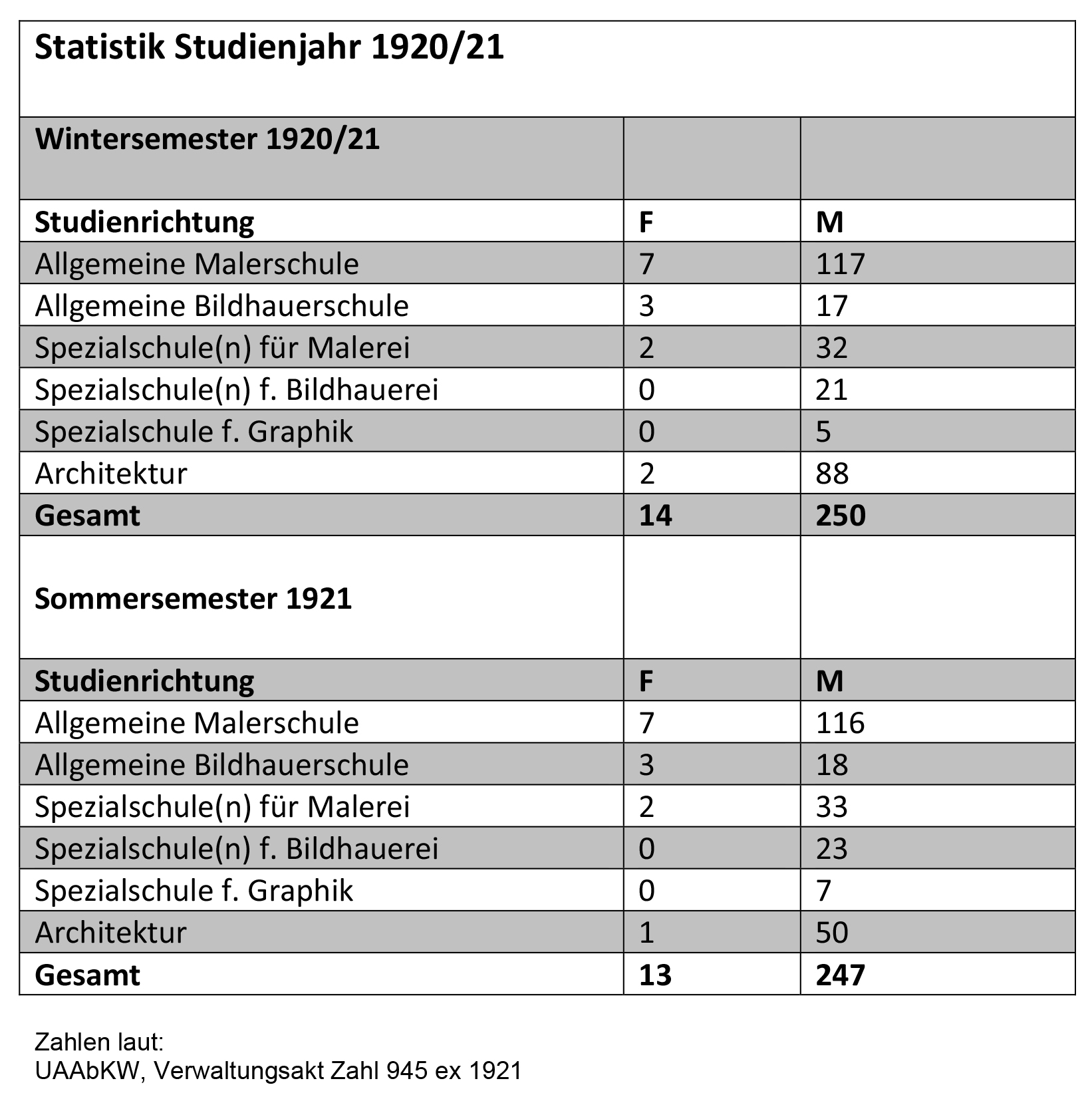 In die Meisterschule für Graphik wurden 1920/21 gar keine Frauen aufgenommen.