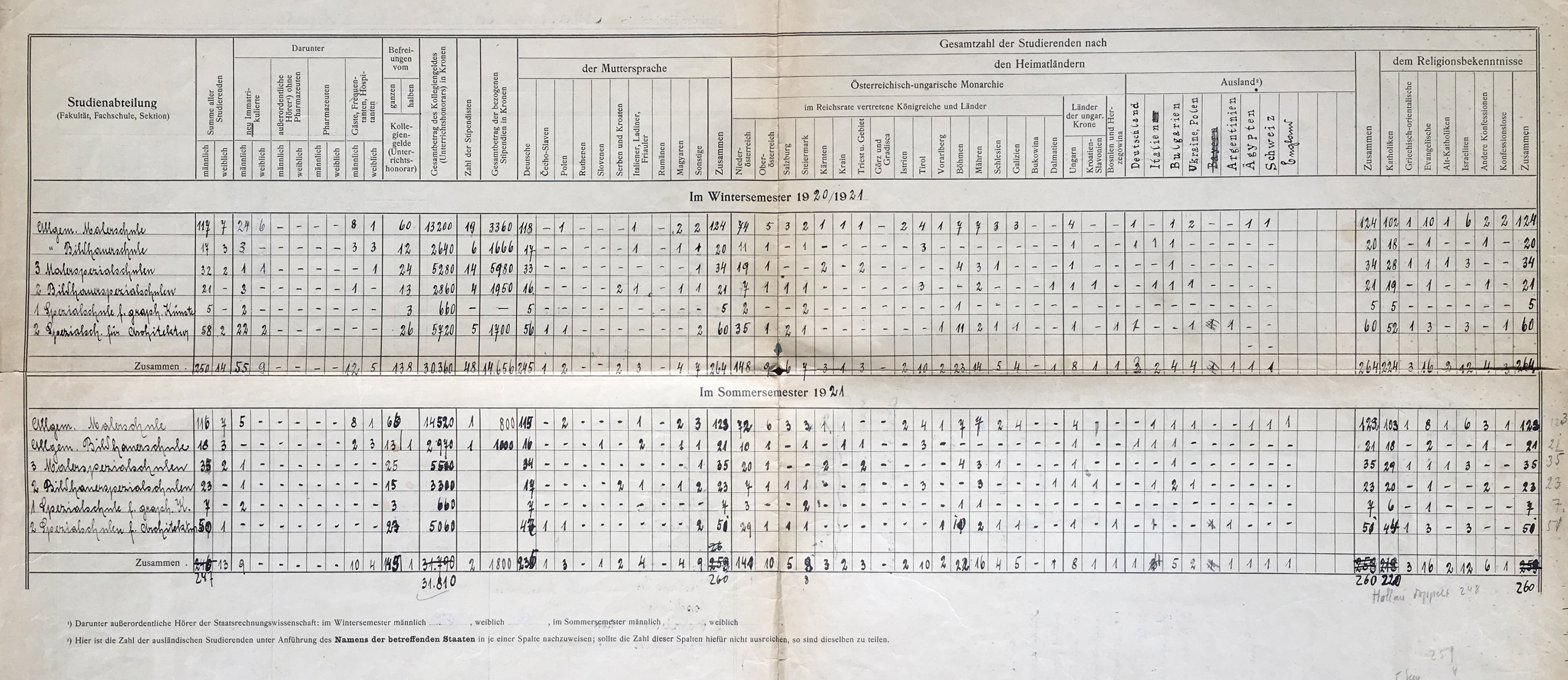 Wer waren die ersten 14 Frauen, die im Wintersemester 1920/21 ihr Studium an der Akademie der bildenden Künste Wien begannen? Und wie ging es danach weiter? Statistische Daten und Fakten aus den Studierendenakten des Universitätsarchivs geben interessante Ein- und Ausblicke.