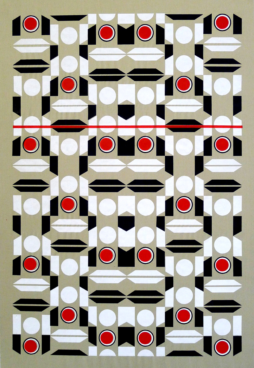 Nach eingehender Beschäftigung mit dem Thema der Moderne und damit entstandenen Repräsentationsformen von Weiblichkeit in den 1920 Jahren dekonstruiert die Künstlerin Stefania Strouza das Logo und die Form einer Lucky Strike Zigarettenschachtel in einen abstrakten Farb- und Formcode. Mittels Siebdruckverfahren hat sie auf eine präzise, intelligente und ästhetische Weise eine mulitfunktionale und adaptierbare serielle Arbeit geschaffen, die sowohl als Grafik als auch in erweiterter textiler Form als Instrument performativen Handels gesehen werden kann.
