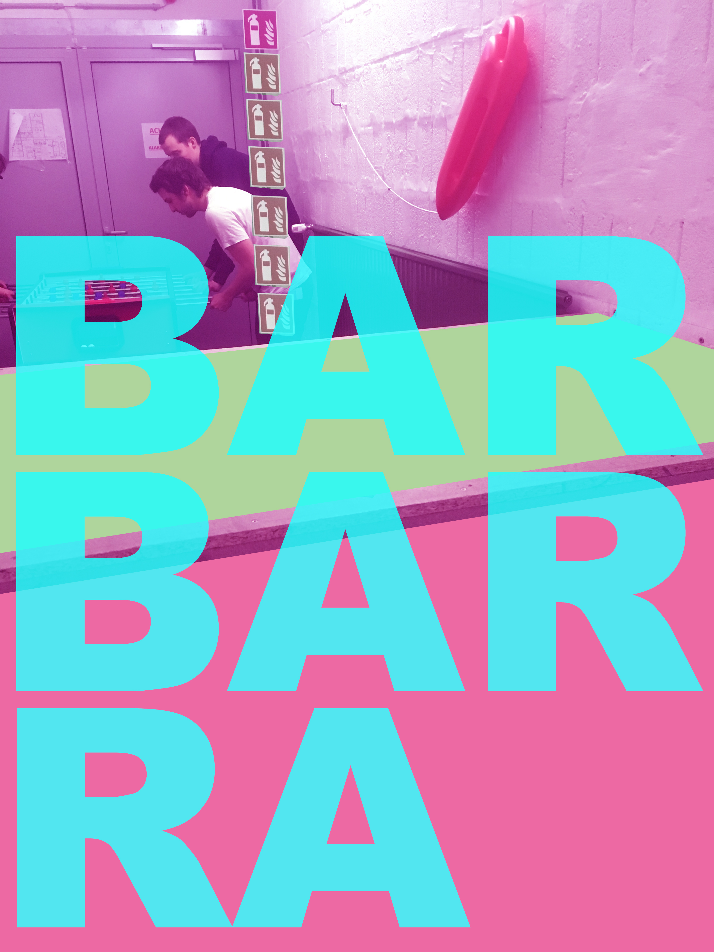 Der Fachbereich für Performative Kunst und Bildhauerei hat mit dem Bar-Kollektiv im Jahr 2015 mit „the Bar“ angefangen und im Jahr 2016 mit der „Water Bar“ fortgesetzt. Dieses Jahr begrüßt euch die „Sorrybar“ mit einem unentschuldbar unterhaltsamen Abend mit kompromisslosen DJ-Sets, unverfroren guten Drinks und Performances.