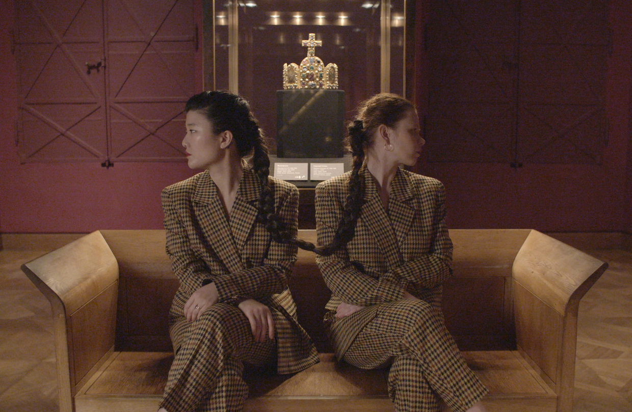 Die Videoarbeit von Yul Koh & Sophie Anna Stadler, der die Ausstellung ihren Titel verdankt, zeigt die Künstlerinnen als doppelköpfiges Hybridwesen aus geistlicher und weltlicher Macht, beim Versuch sich der Reichskrone zu nähern, sich ins Museum einzufügen, sich in die Geschichte einzuordnen oder sich auch dagegen zu sträuben. Durch das Unterbrechen von eigenen Aufnahmen mit Found Footage (gefundenem Filmmaterial) entsteht ein Teppich aus verschiedenen Wahrnehmungs- und Referenzebenen, eine Art Bewusstseinsstrom, der die Betrachter_innen einlädt, zu assoziieren.