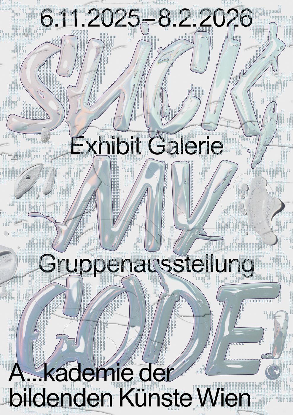 Die Gruppenausstellung SUCK MY CODE! eröffnet einen glitchigen Erfahrungsraum, in dem digitale Körperlichkeit im Spannungsfeld von Kapitalisierung und Sexualisierung verhandelt wird.