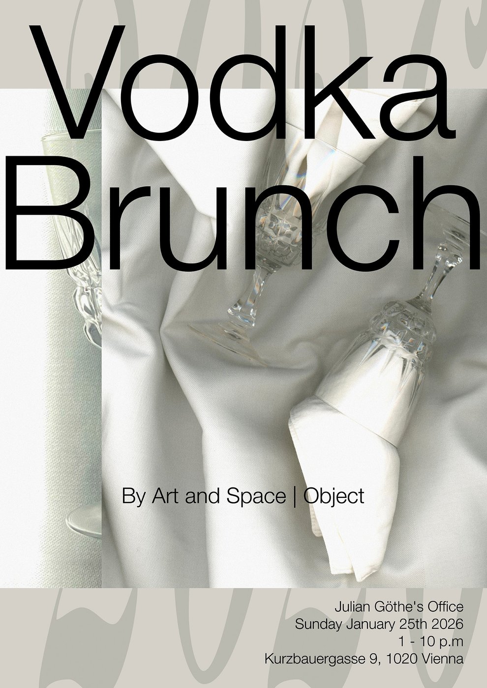 Vodkabrunch Datum So 25.1.2026 Uhrzeit 13–22h Termin Label Party Organisationseinheiten Bildende Kunst Ort, Treffpunkt (1) Bildhauereiateliers Ort, Adresse (1) Kurzbauergasse 9 Ort, PLZ und/oder Ort (1) 1020 Wien Ort, Raum (1) EG 60 Der Fachbereich Kunst und Raum I Objekt lädt zum Vodkabrunch in der Kurzbauergasse. Copyright: Poster Vodkabrunch, J McCormack Termin Zum Kalender hinzufügen