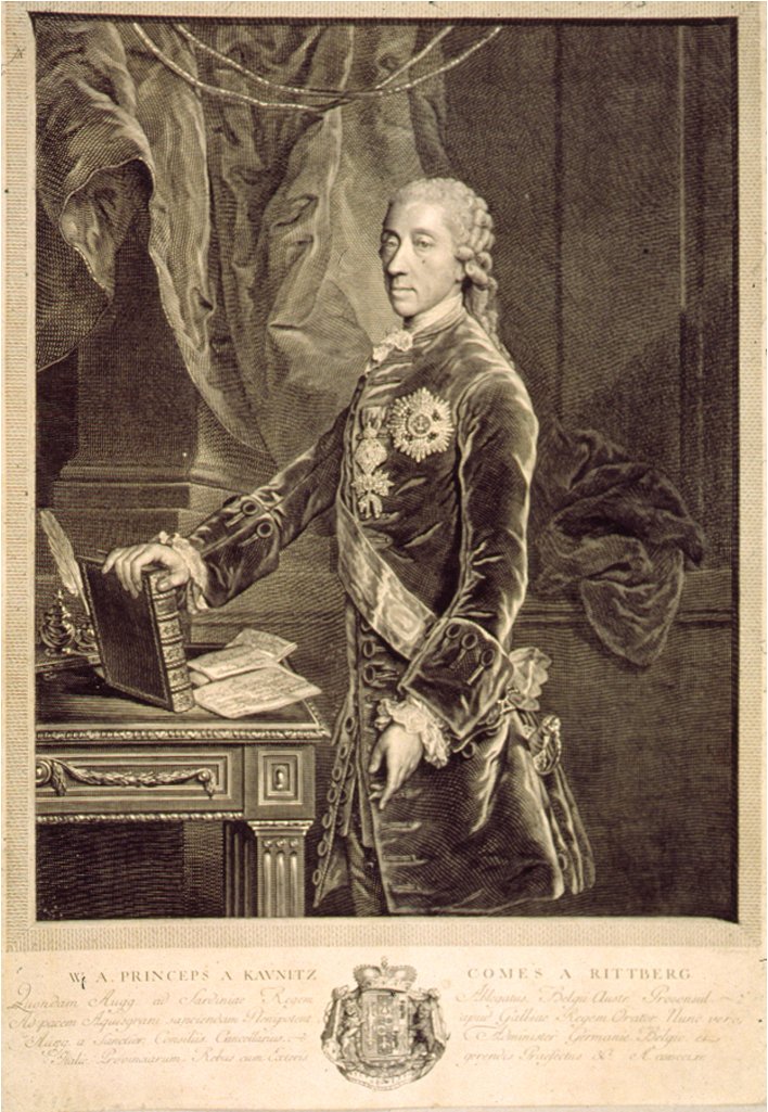 Aufklärung und Säkularisierung sind die Ausgangspunkte für die Neuorientierung der Kunst in Österreich im 18. Jhdt. Eine maßgebende Rolle dabei spielte der Staatskanzler Kaiserin Maria Theresias und Protektor der Akademie Wenzel Anton Fürst Kaunitz (1711- 1794). Selbst ein überzeugter Anhänger der neuen geistesgeschichtlichen Strömung, stellte der Klassizismus ein umfassendes gesellschaftliches und kulturelles Programm dar, der sich an den europäischen Kunsttheorien vor allem aber an den Forderungen Winckelmanns orientierte. In seiner über 20 Jahre währenden Tätigkeit an der Akademie war Kaunitz für die Reorganisation der Akademie und die Zusammenführung der einzelnen Akademien wie der Maler- Bildhauer und Baukunst-, der Kupferstecher-, Graveur- und Possierakademie und der Manufakturzeichenschule unter dem neuen Namen "K.K. Akademie der vereinigten bildenden Künste" verantwortlich. Durch die Einführung der Romstipendien und die Berufung neuer Lehrer wurde die Wiener Akademie eine der führenden Kunstschulen Europas.