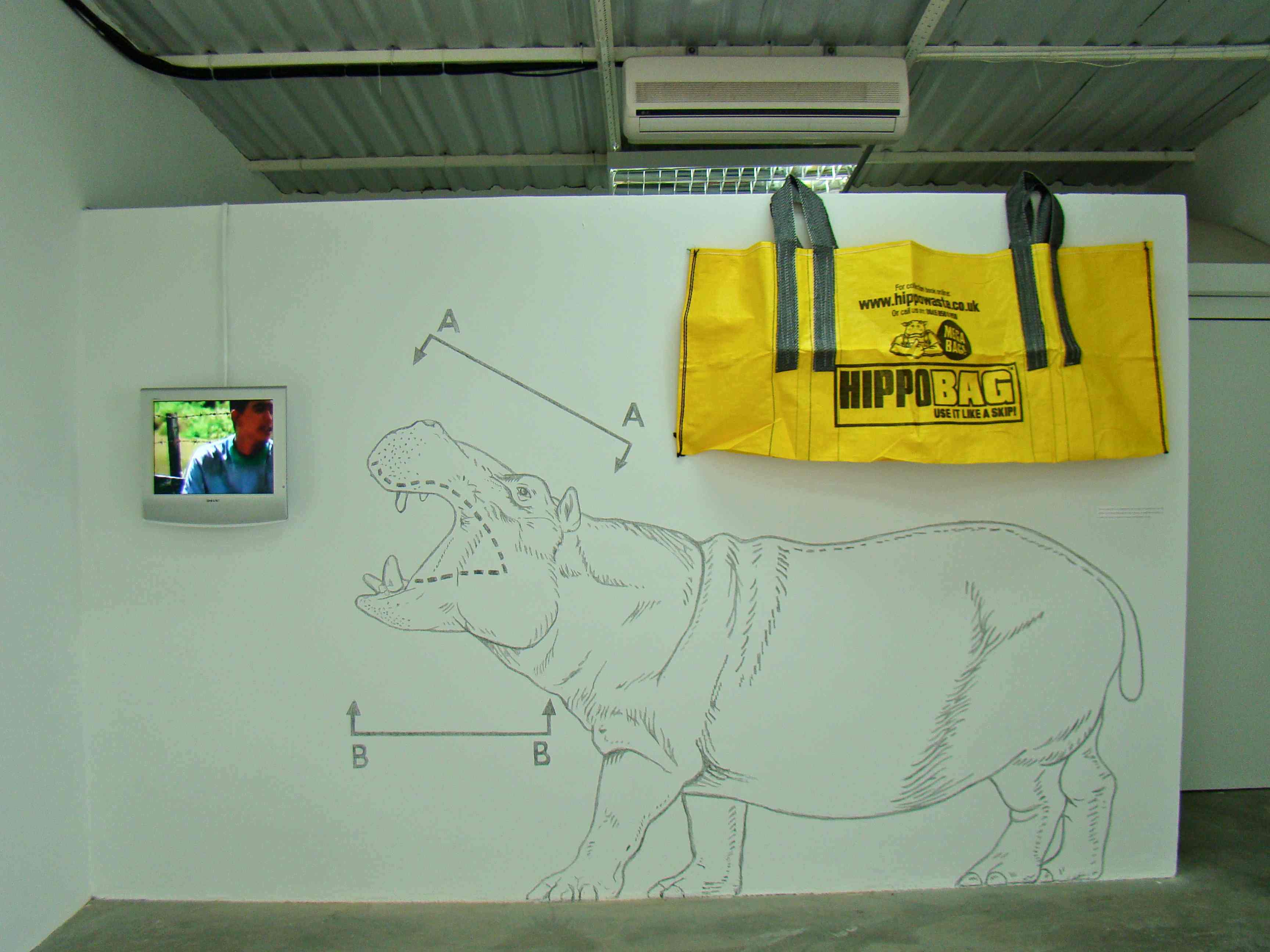 Dieses Werk kommentiert die Geschichte und Errichtung der "Napoles Ranch". In den 1980er Jahren baute der kolumbianische Drogenbaron Pablo Escobar einen Freizeitpark für sein Imperium. 200 exotische Tiere wurden an einem entlegenen Ort versammelt. Nach Escobars Tötung durch die Polizei wurden diese Tiere ihrem Schicksal überlassen. Die Nilpferde jedoch überlebten, und 17 Jahre später bevölkern sie noch die Gegend des Magdalena Flusses. Die künstlerische Intervention von Castillo zeigt eine phantastische Reise um ein surreales Archiv von Fakten.