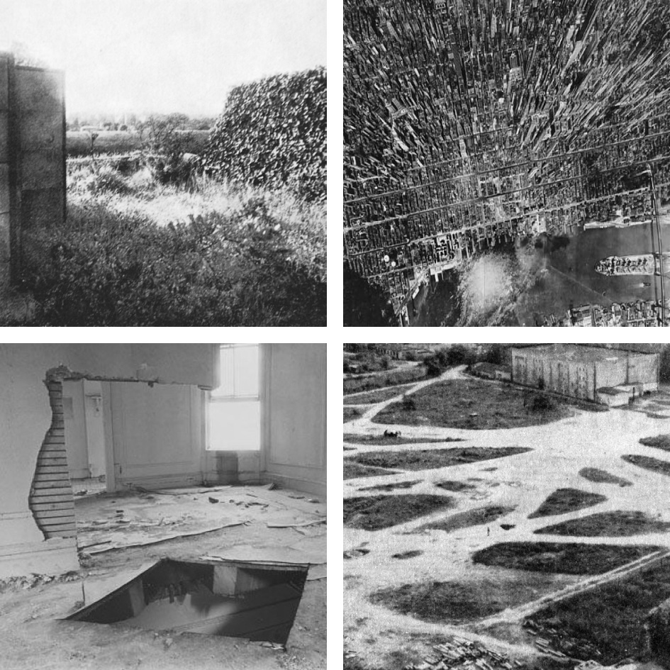 1) Le Corbusier, Report über einen Dachgarten, 19442) Andreas Feininger, Aerial View of New York, 19503) Gordon Matta-Clark, Bronx Floors: Floor Above, Ceiling Below, 19724) Berlin, Anhalter Bahnhof, ca. 1977