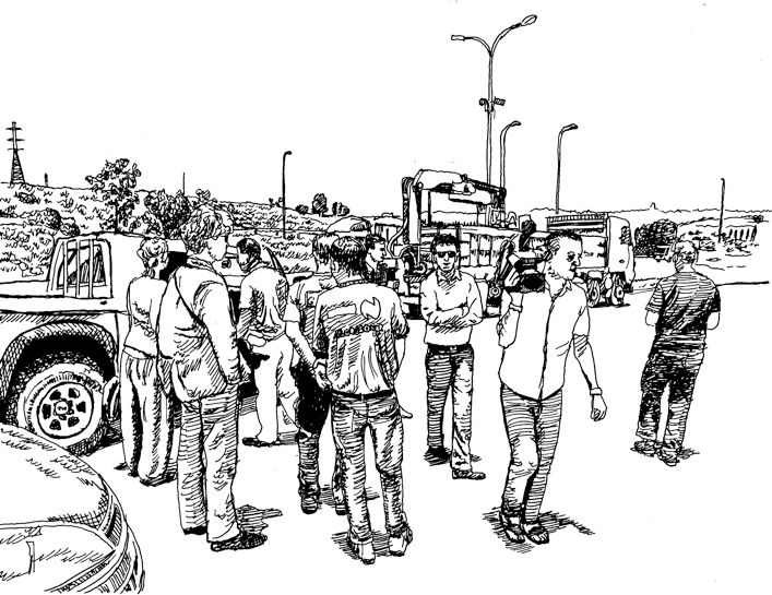 Michael Baers presents his poster works Decolonizing Architecture: Four Human Landscapes and A Beyond that Doesn't Get You Anywhere as well as his work An Oral History of Picasso in Palestine , a graphic novel, which engages with a specific event that took place in 2011: A painting by Picasso, Buste de Femme , from 1943, owned by the Van Abbemuseum in Eindhoven/Netherlands, travelled to the West Bank/Palestine and was on display for a short time in an improvised gallery space at the International Academy of Art, Palestine. By studying this specific event in detail, Baers' artistic research project investigates and exemplifies methods of governance, which are employed in the occupation of Palestine on a larger scale.