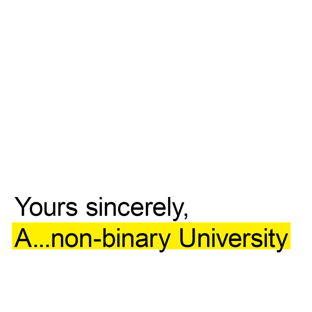 A…non-binary University, 2022. Copyright leaders of the workshop. Poster mit Text "Yours sincerely, A… non-binary University" website (002).jpg image/jpeg Type image/jpeg Dimension Dimension 1080x1080 Size File size 111.8 KB Download View full-size image