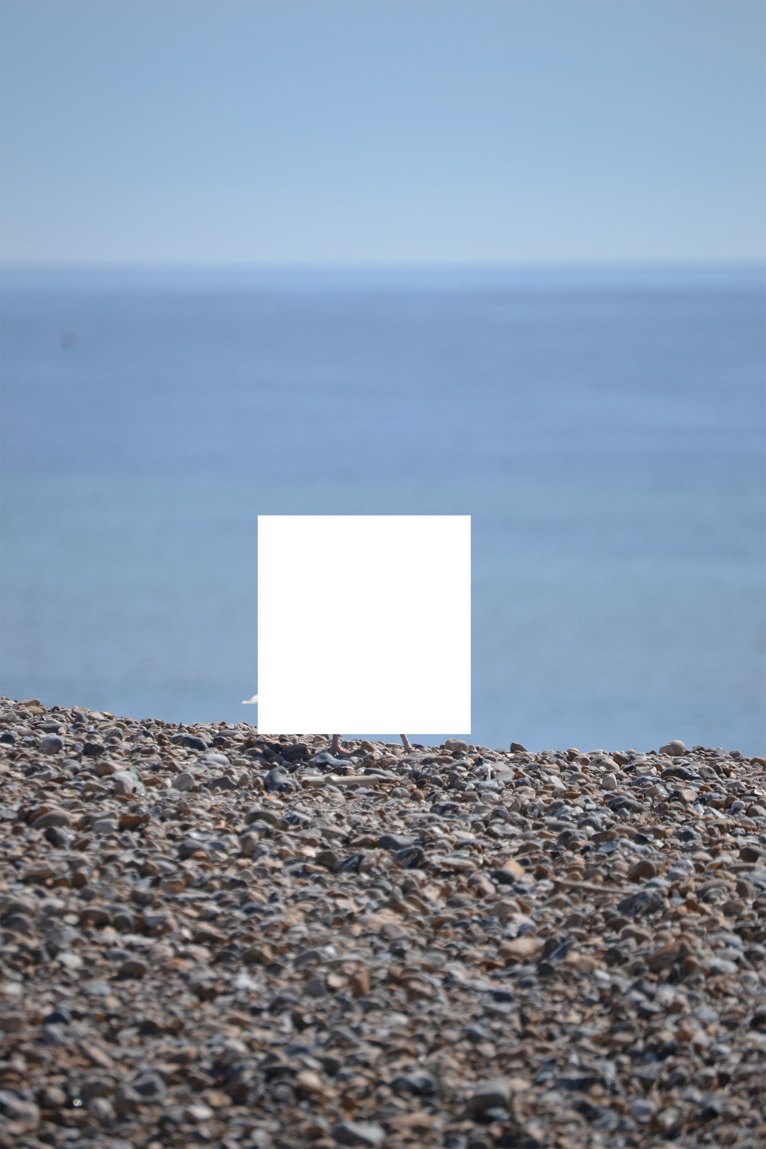 view of the sea. Where one might expect to see a seagull, there is a black area blocking the view.