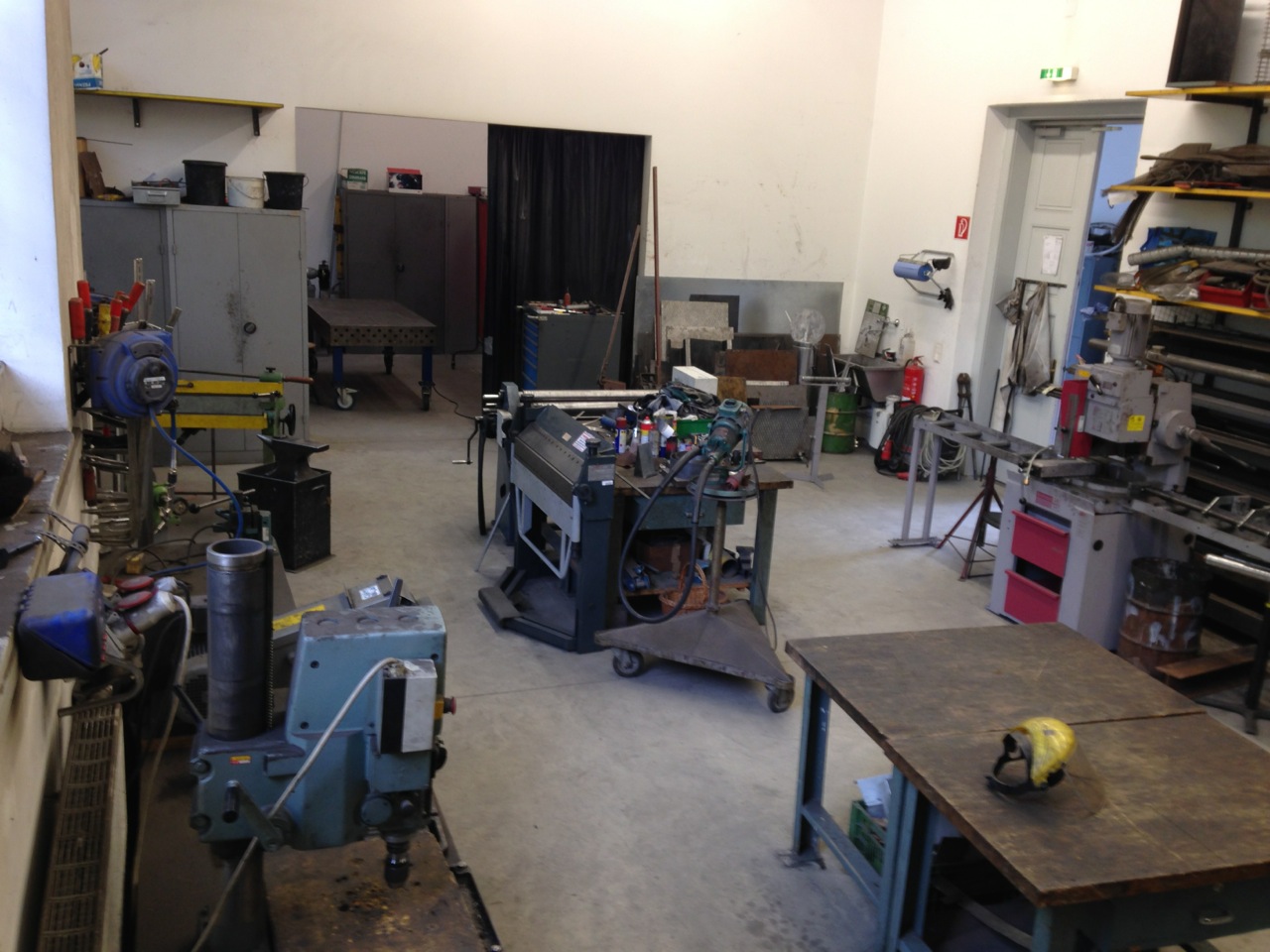 In the course of the elective compulsory subject Basics of Sculpting / Metal 1 , an entire semester is devoted to providing students with a profound fundamental knowledge of metalworking. The course serves as introduction to independent workshop use, focusing on safety and skilled working processes. We recommend students to take this introductory course especially at the beginning of a degree course so that they can use the Workshop during their entire studies. However, students who can prove their familiarity with metalworking are permitted to use the workshop immediately.