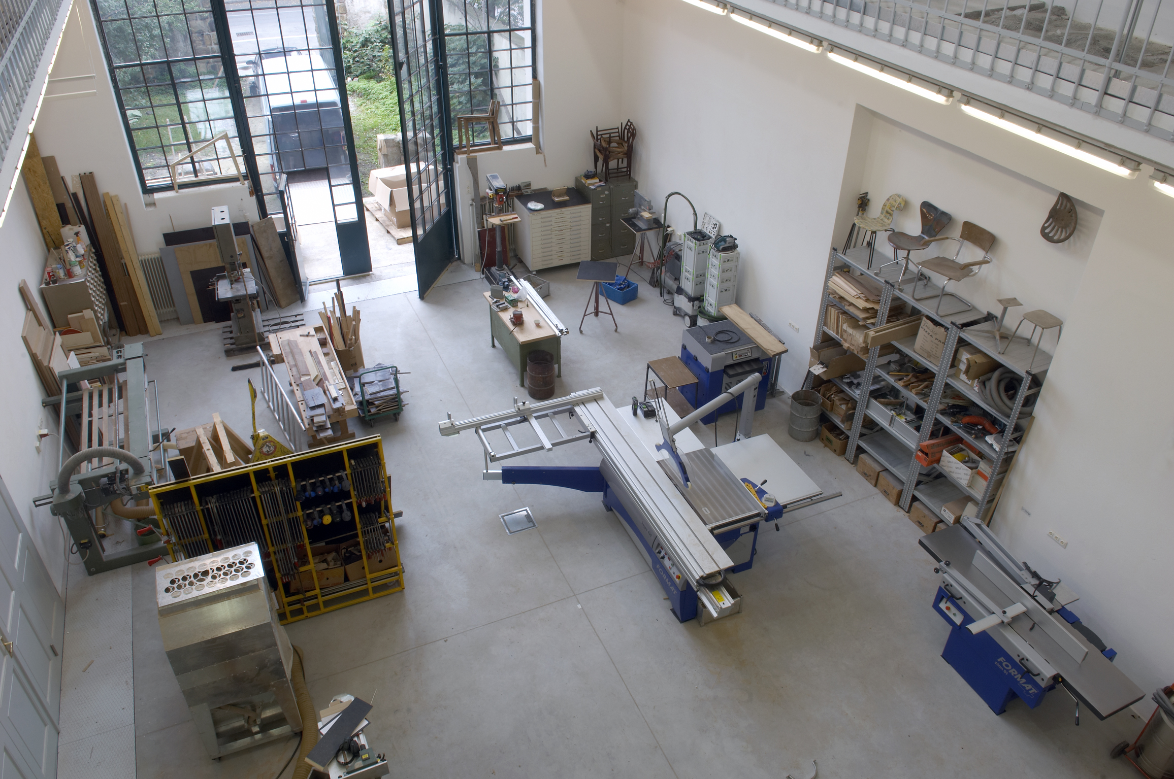View from above into the workshop in the sculpture studios