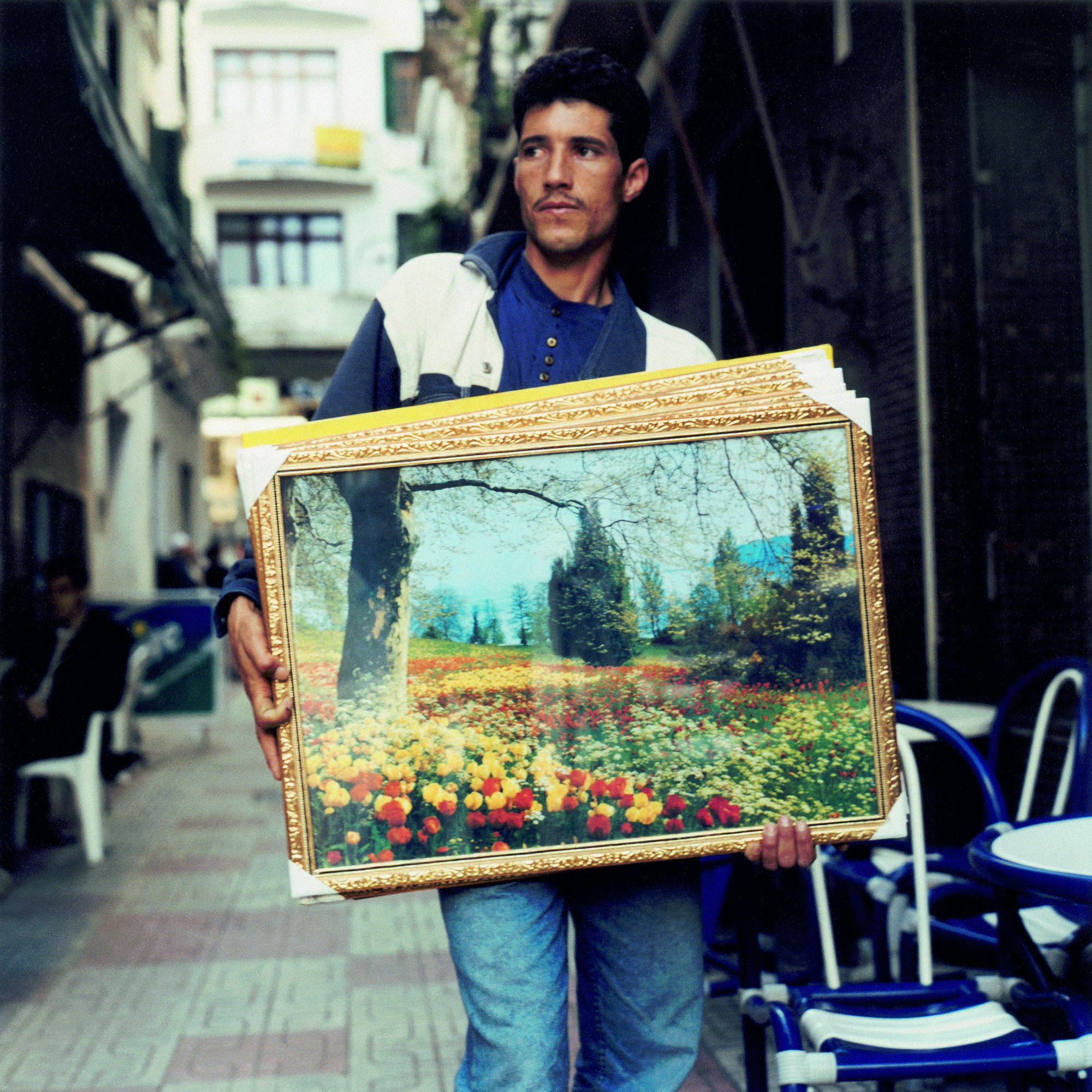 Yto Barrada, Man with painting - Tetouan, 1999 Photo © MUMOK, Museum Moderner Kunst Stiftung Ludwig Wien