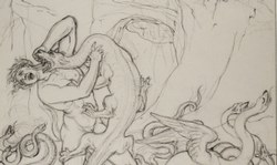 Joseph Anton Koch, Agnello Brunelleschi, vom sechsbeinigen Drachen angefallen, 1803Illustration zu Dantes "Divina Commedia", Federzeichnung© Graphic Collection of the Academy of Fine Arts Vienna