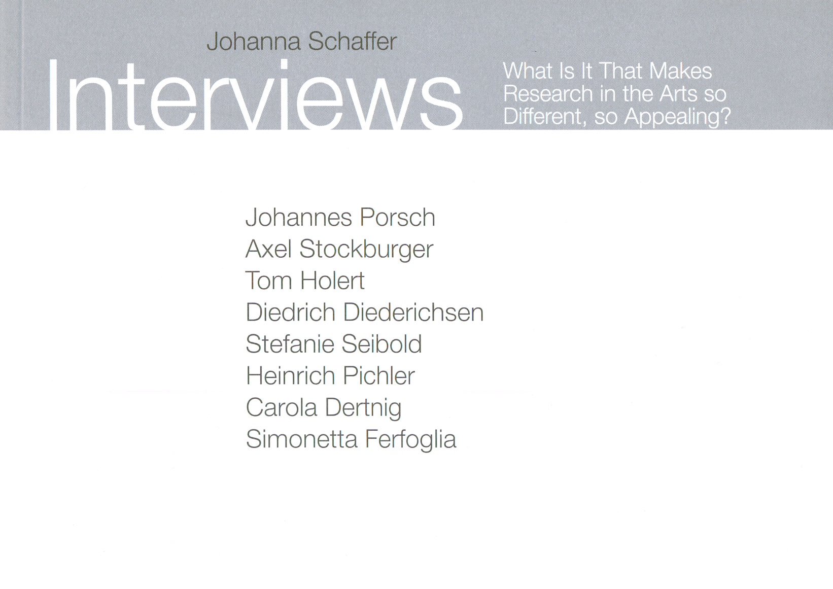 Johanna Schaffer has chosen the various project partners' research activities as the issue of her inquiry; she relies on interviews to find out which possibilities the concept of "artistic research" offers to the individual participants and what is blocked and made impossible by it.