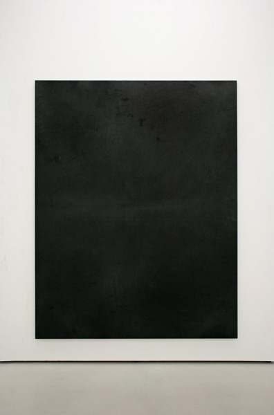 At first glance the works of Anneliese Schrenk appear as monochrome color fields in a reduced tint. But quickly a flicker is detected and the surfaces are anything but monochrome. A texture which reflects the light can be recognized, through which black unfolds and green, gray, and purple shine through. A closer glance reveals that it is a property of the ground that calls the images to life. The effect is created through the choice of material: Anneliese Schrenk uses leather, for example, as her canvas and works with stains, acid, and shoe polish.