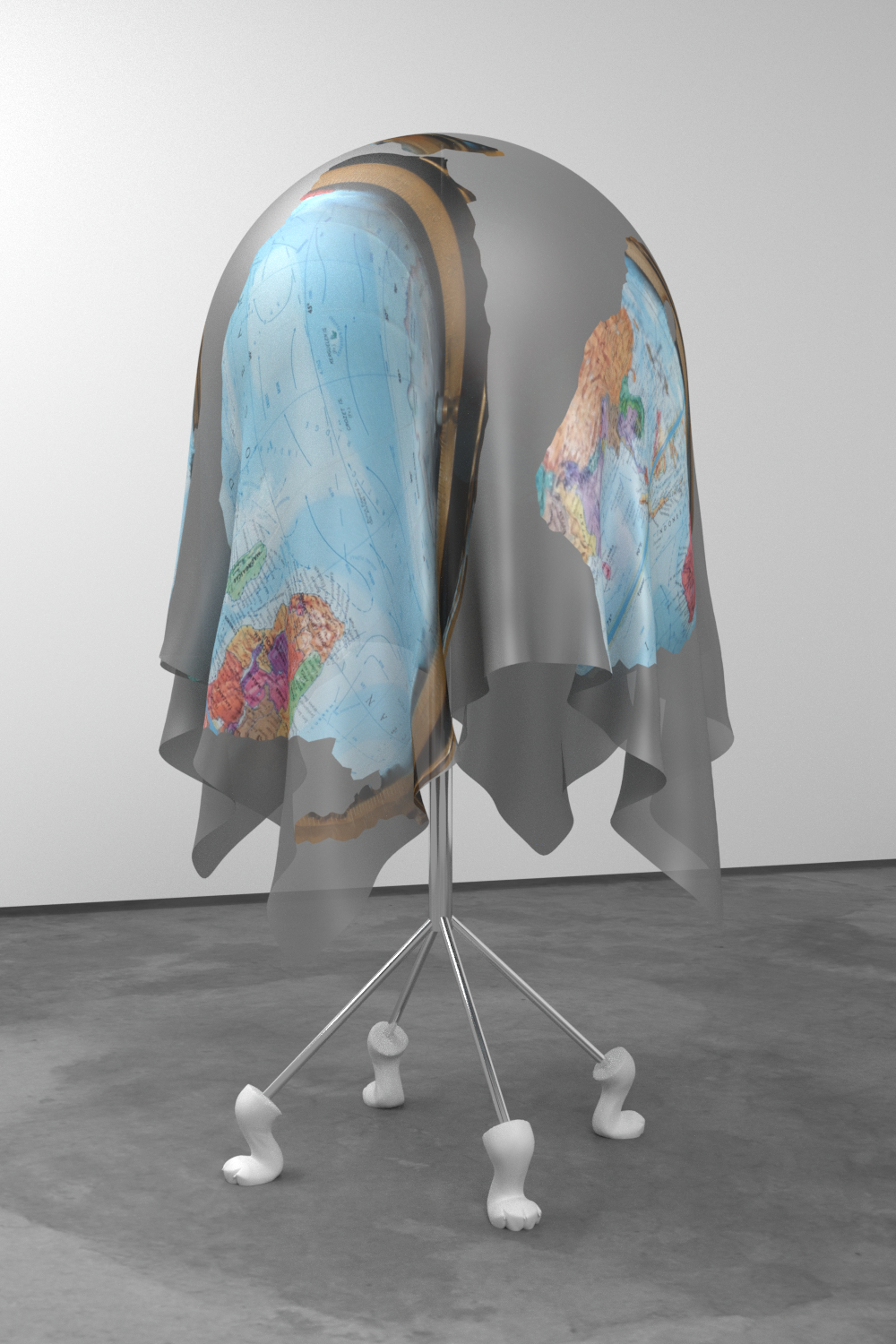 (with cat paw detail) , acryl glass, 3D print, steel, textile print, 2017, Hemispheres (with turtle shell detail) , 2010, Viltė Bražiūnaitė & Tomas Sinkevičius, A Romance of Many Dimensions , 2017, video