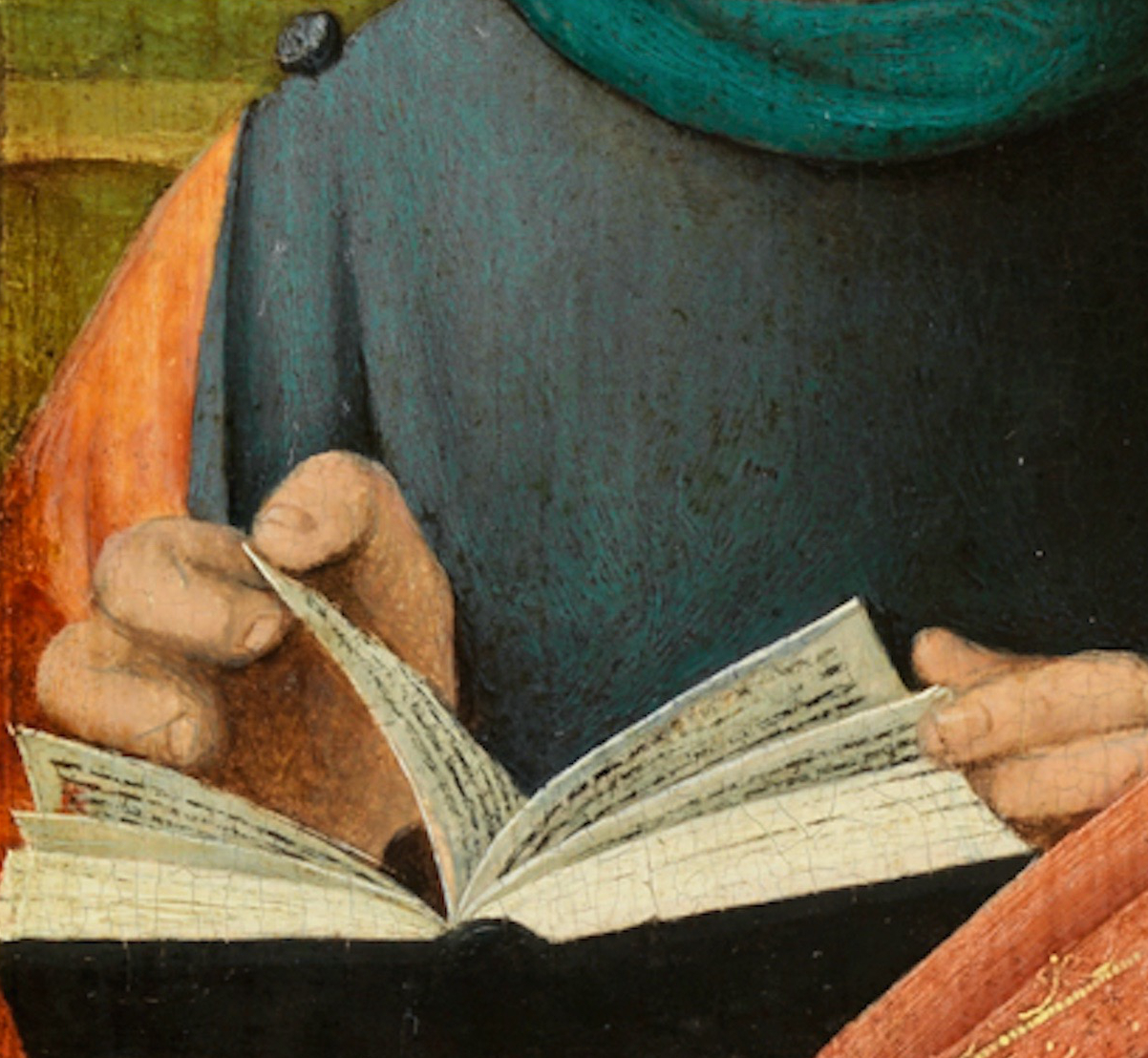 Joos van Cleve, The Holy Family (detail), c. 1520–1530 © Paintings Gallery of the Academy of Fine Arts Vienna two hands hold an open book LessonsCleve-v3.jpeg image/jpeg Type image/jpeg Dimension Dimension 1202x1108 Size File size 949.3 KB Download View full-size image