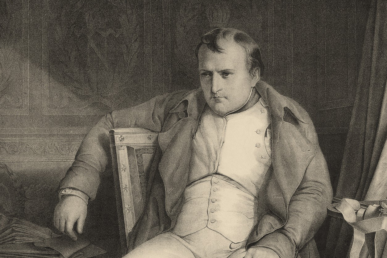 Ana Torfs, Révolution, photodiptych (detail), 2003 © Ana Torfs; Unknown artist after Paul Delaroche, Napoleon I at Fontainebleau on March 31, 1814, after 1840 (detail) © Graphic Collection of the Academy of Fine Arts Vienna