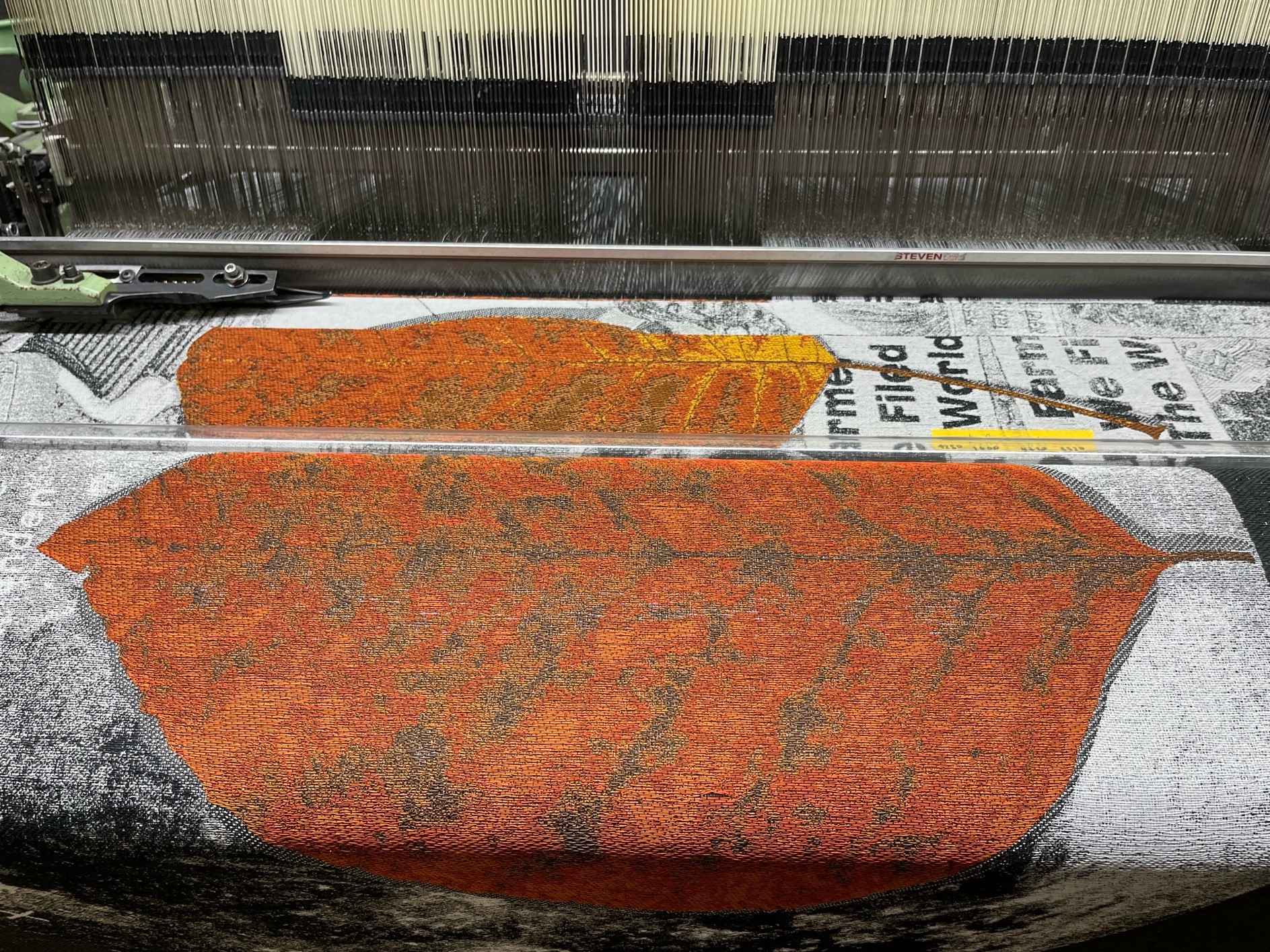 Ana Torfs, Test piece on a Jacquard loom for The Day You Were Thinking About the Sibyl While You Were Picking Autumn Leaves. In cooperation with TextielLab, Tilburg © photo: Ana Torfs, 2024