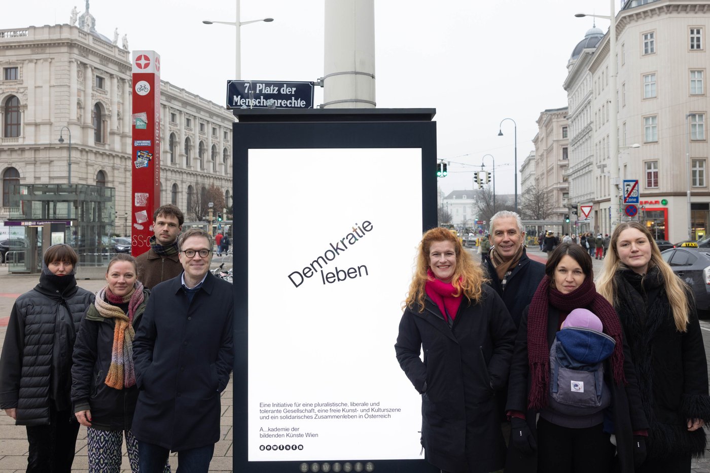 The project was created as an activity within the framework of Academy | Art | Public Sphere, an overarching, internal committee whose program promotes engagement with different urban publics, with diverse addresses and actors. With this focus, the academy characterizes its understanding of artistic practice - such as interventions in public space, interventions as well as actionist and activist art forms - and their mediation, academic work and university policy profiling. We are delighted to have found a perfect cooperation partner for the Demokratie leben initiative in Gewista.