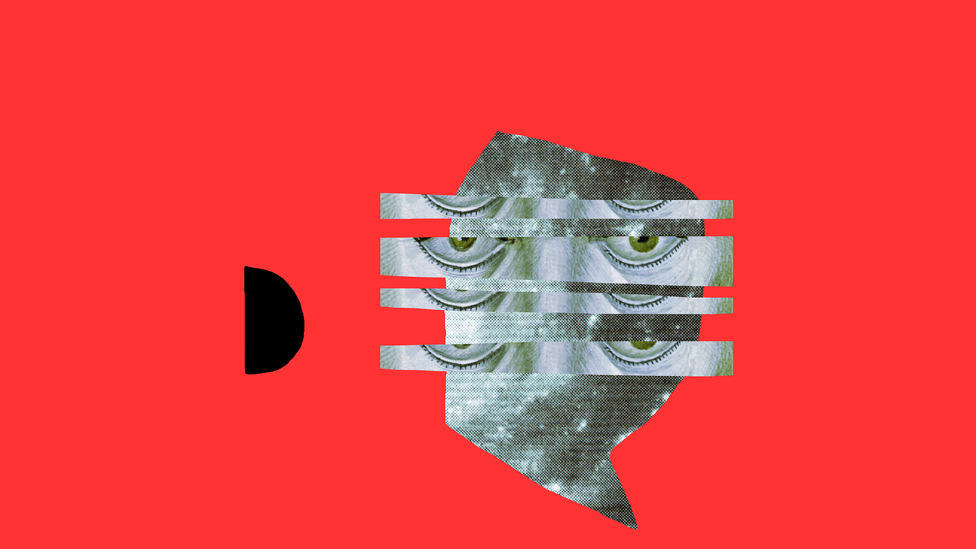 Film still from the film My Galactic Twin Galaction by dir. Sasha Svirsky, 2020 Film still, you can see a red background with a black semi-circular element, striped cutouts of eyes on a gray area 2.MyGalactinTwinGalaction_Svirsky_1.jpg image/jpeg Type image/jpeg Dimension Dimension 1920x1080 Size File size 447.5 KB Download View full-size image