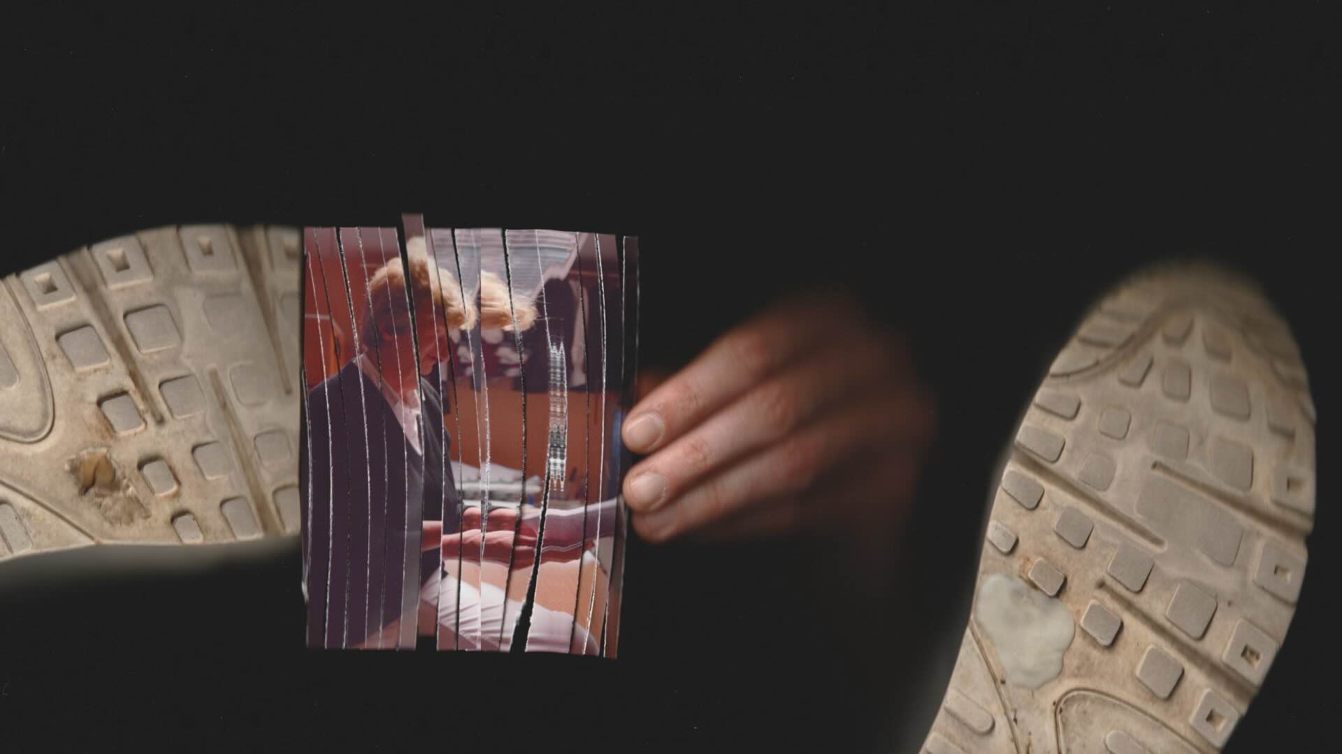 Aykan Safoğlu, Still from “Hundsstern steigt ab” [Dog Star Descending], 2020 A shredded picture is being taken from underneath a pair of worn-out sneakers. Aykan_Safoglu_Still_from_Dog_Star_Descending_2020.jpeg image/jpeg Type image/jpeg Dimension Dimension 1920x1080 Size File size 86.8 KB Download View full-size image