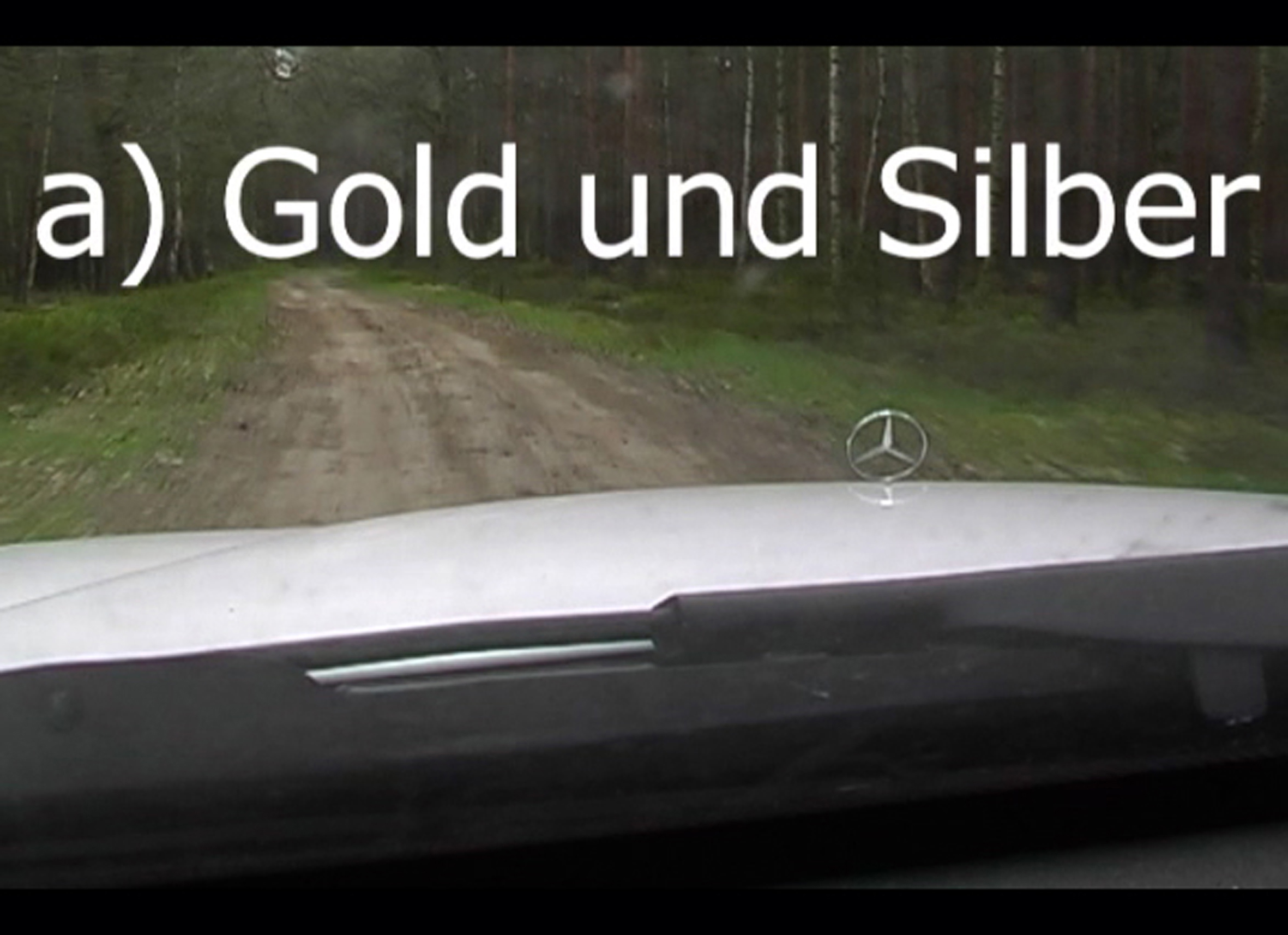 A Mercedes car drives through a deserted forest that separates the border between former West and East Germany. The radio airs an interview with the German Prime Minister Angela Merkel who is talking about the meaning of speech and silence these days and in the former GDR, where she has grown up.