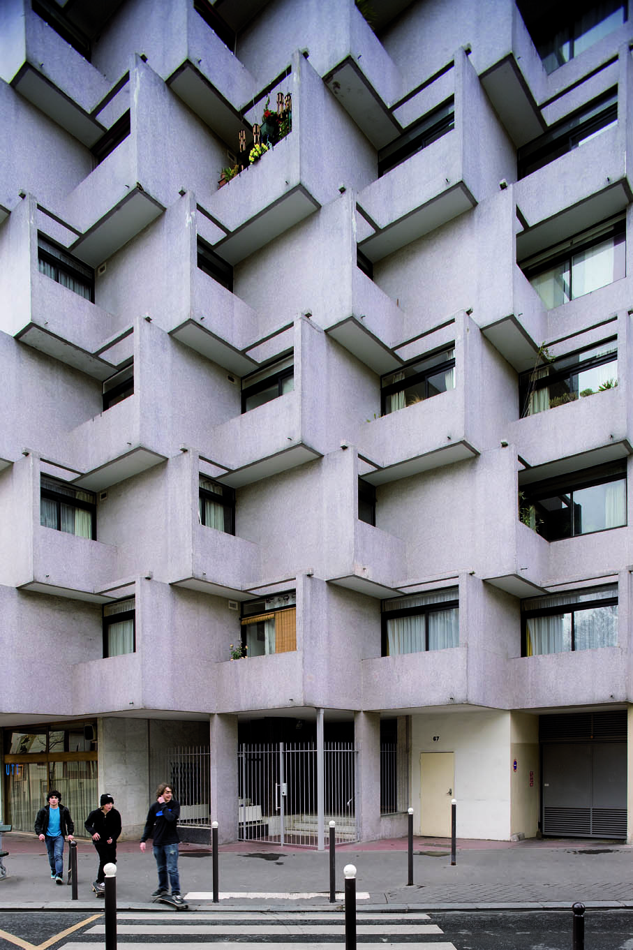 The architecture of his early housing projects in Paris demonstrates a reaction against what he called the 'dictatorship of the curtain wall' and an overemphasis on functionalism and standardization that marked the architecture of that time. Questioning the over-simplification of modernist principles, his office devised strategies to counter the monotony and loss of human scale in the built environment.