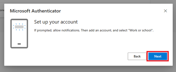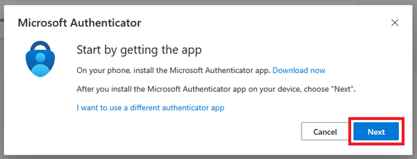 4. If you want to use a different authenticator app than Microsoft Authenticator, please skip the next steps and follow these instructions.